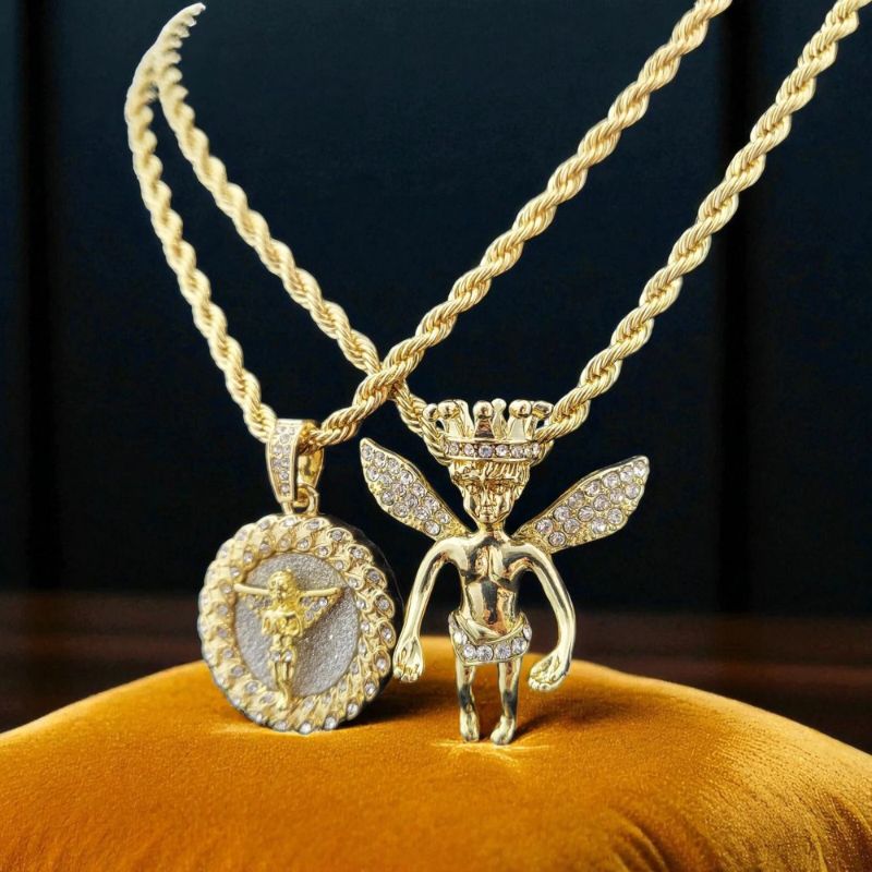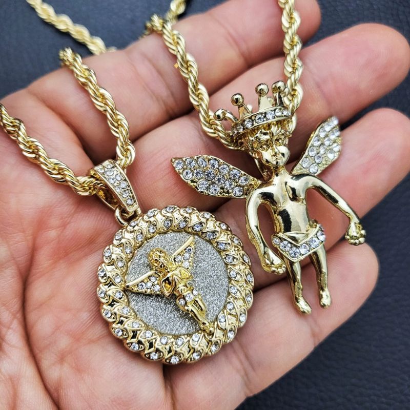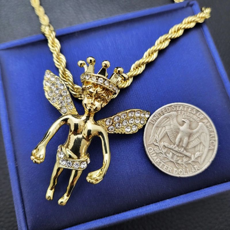 Fast & Free Shipping 🌟 Chain : 4mm 24\ Rope Chain Plated: 14K Gold SIZE OF PENDANT : 45mm x 40mm30mm (Diameter) High Polished"