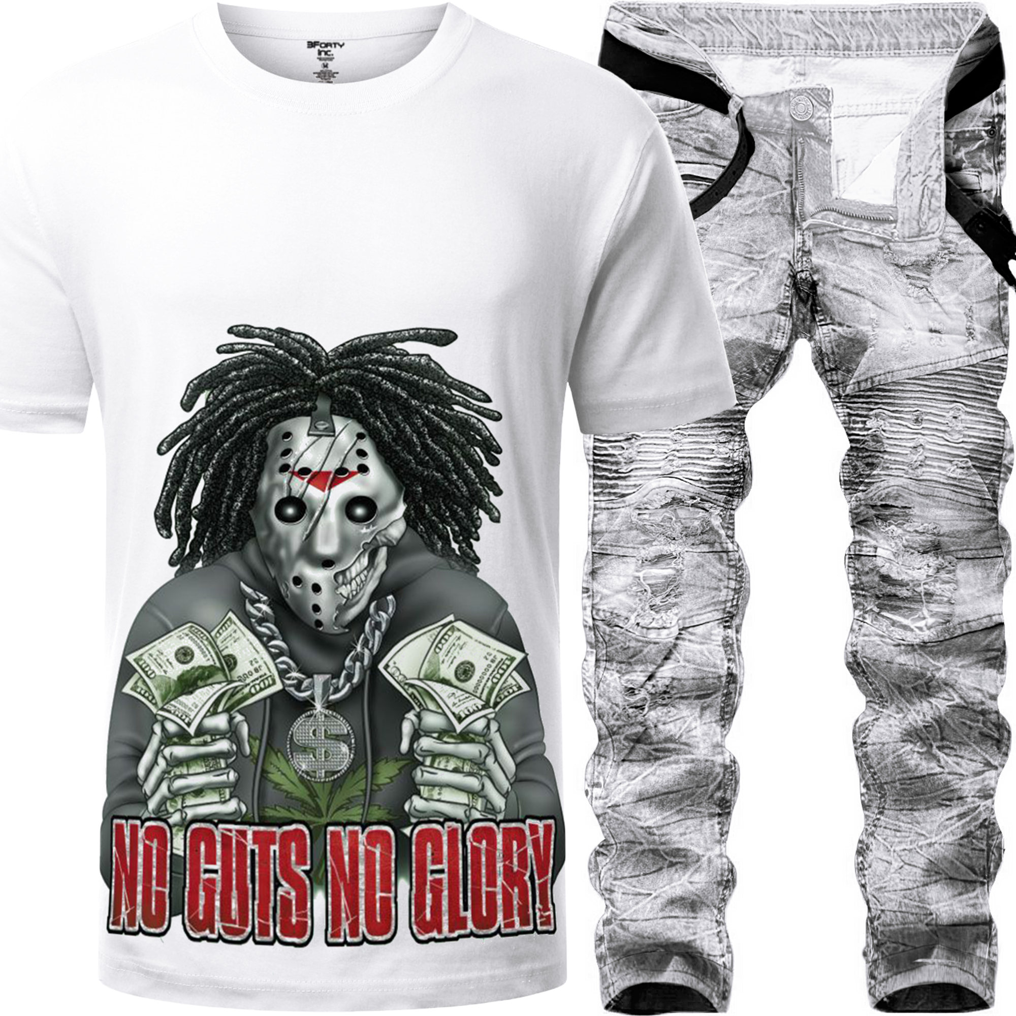 2pc Skinny Acid Grey Jeans+No Glory T-shirt πŸ’Ž