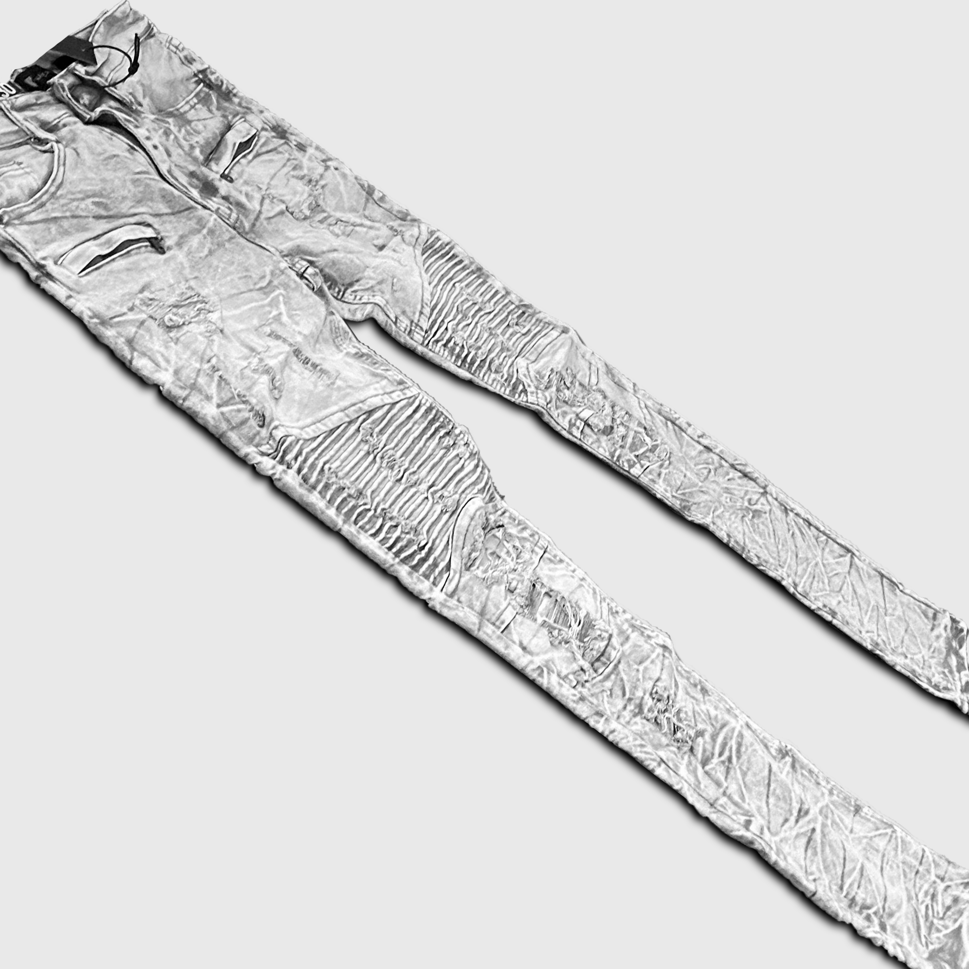 Skinny Grey Acid Wash Biker Jeans ⚑️ (Size)