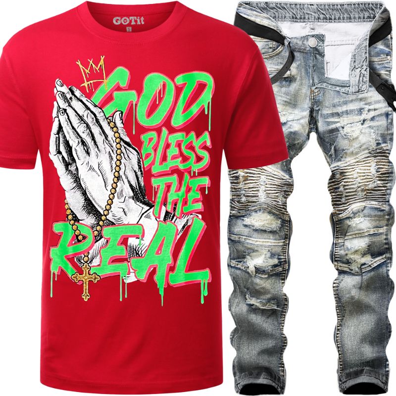 2pc Skinny Biker Jeans+Blessed T-shirt πŸ’Ž