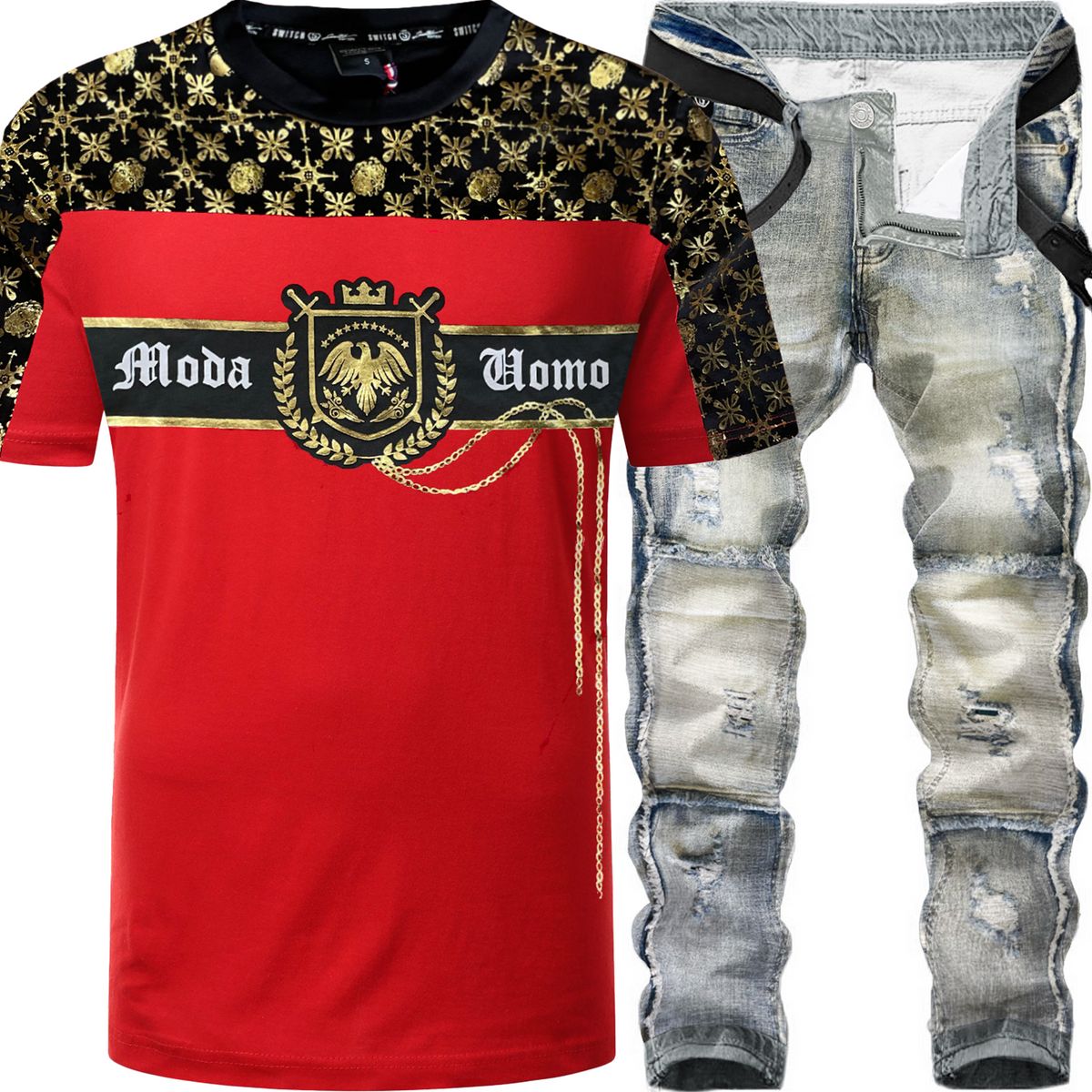 2pc Skinny Ripped Jeans+Royal Foil Print ⚡