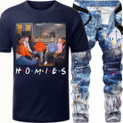 2pc Slim Biker Neon Jeans+Homies T-shirt π
