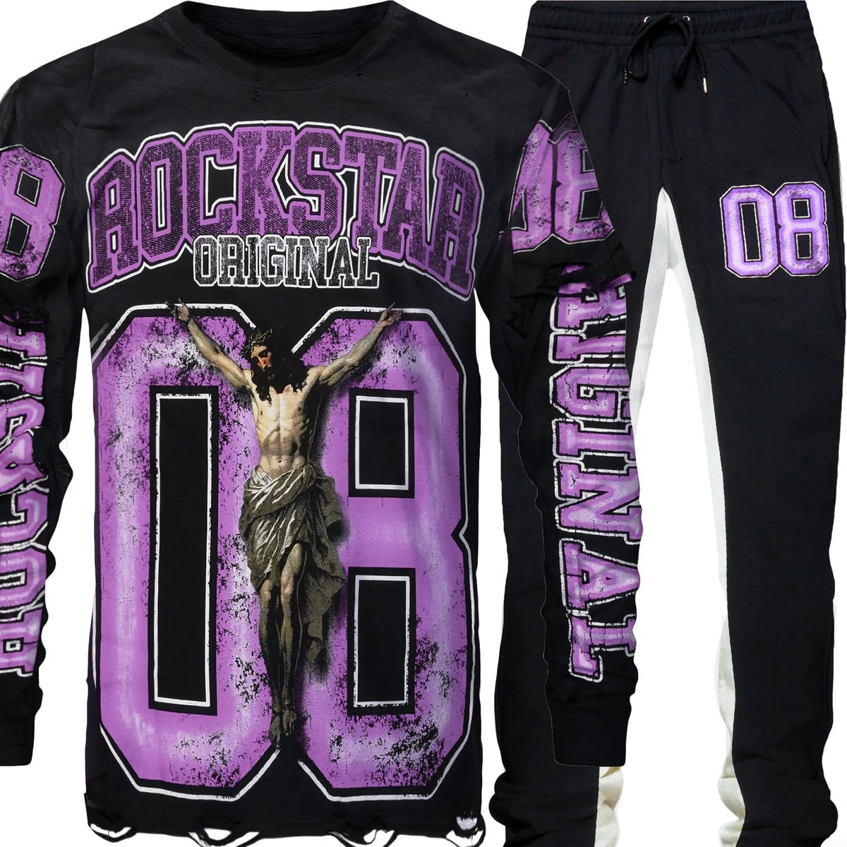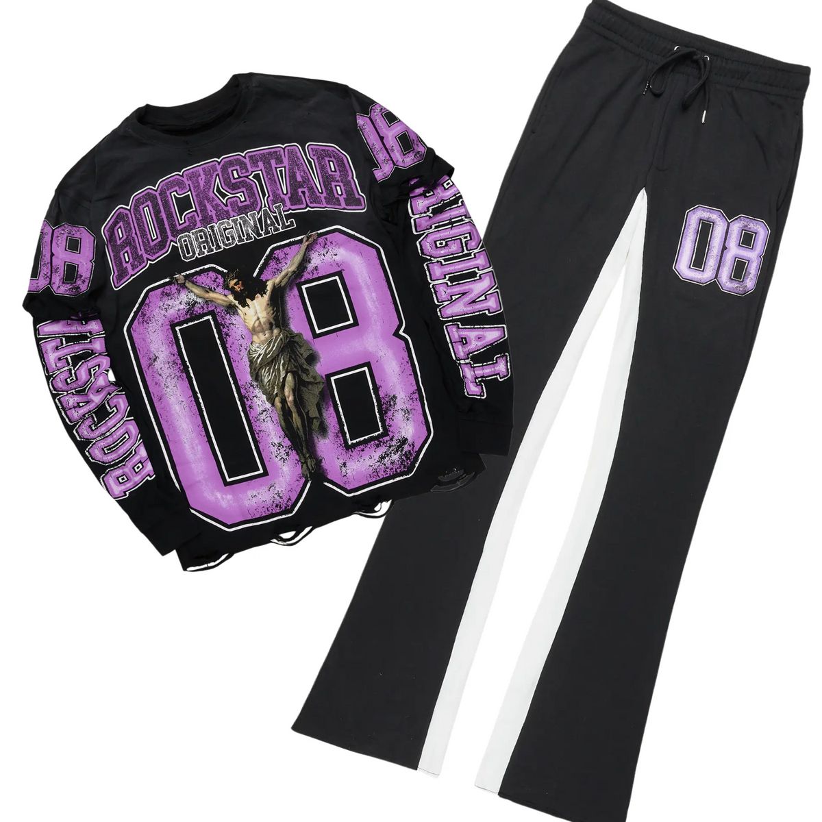 2pc Rockstar Stacked Trackpants+L/S T-shirt ⚡