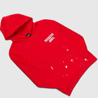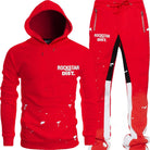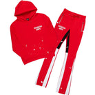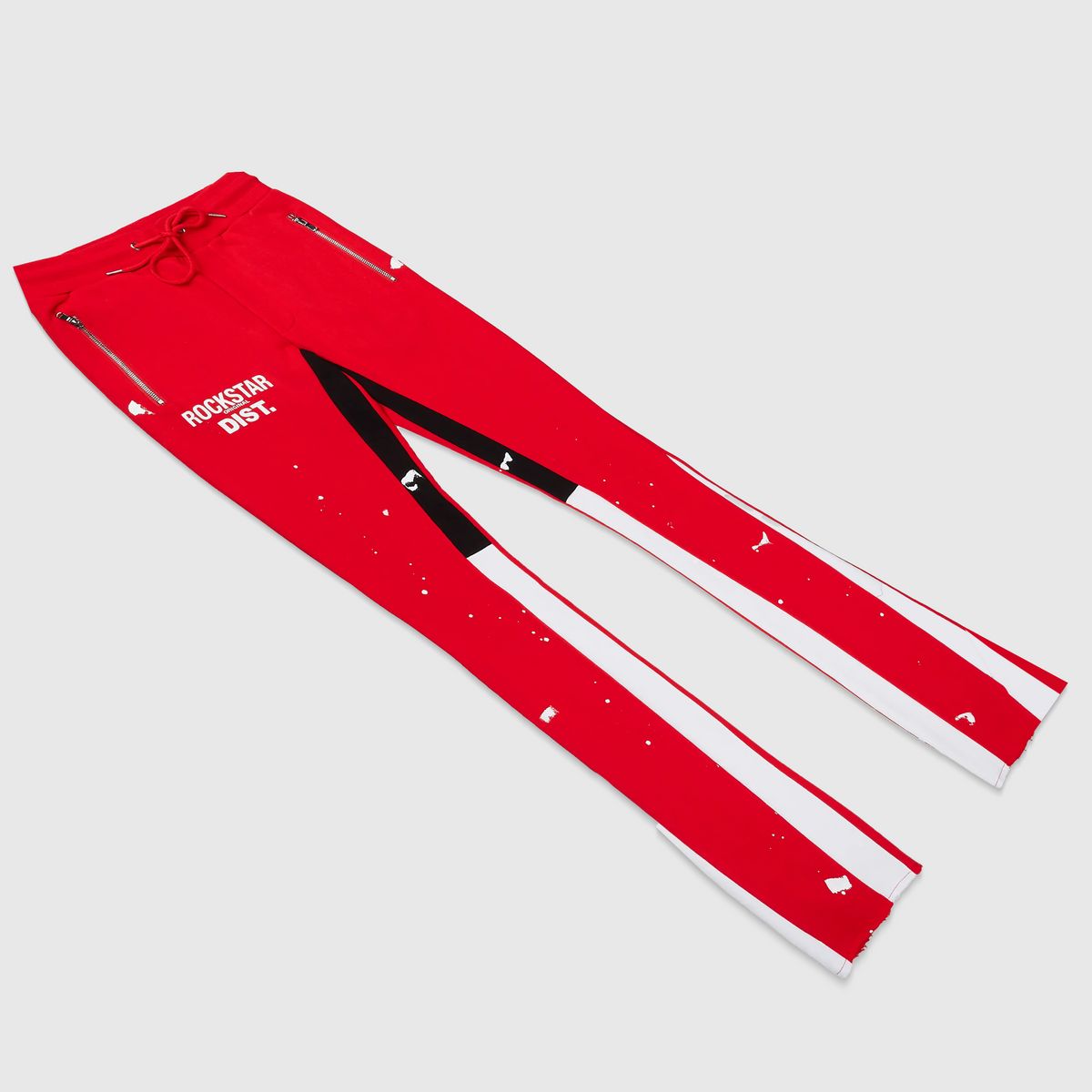 Sizes S-3XL⚡️An urban two-piece super stack flare track set for men in red. Designed with extra long legs and custom paint splatter detailing for a dope streetwear set.