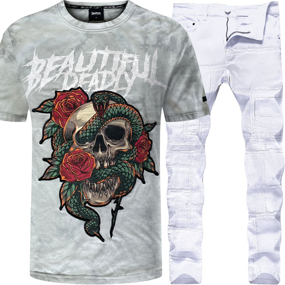 Skinny Cargo Jeans+Beautifuly Deadly Tie T-shirt ⚡