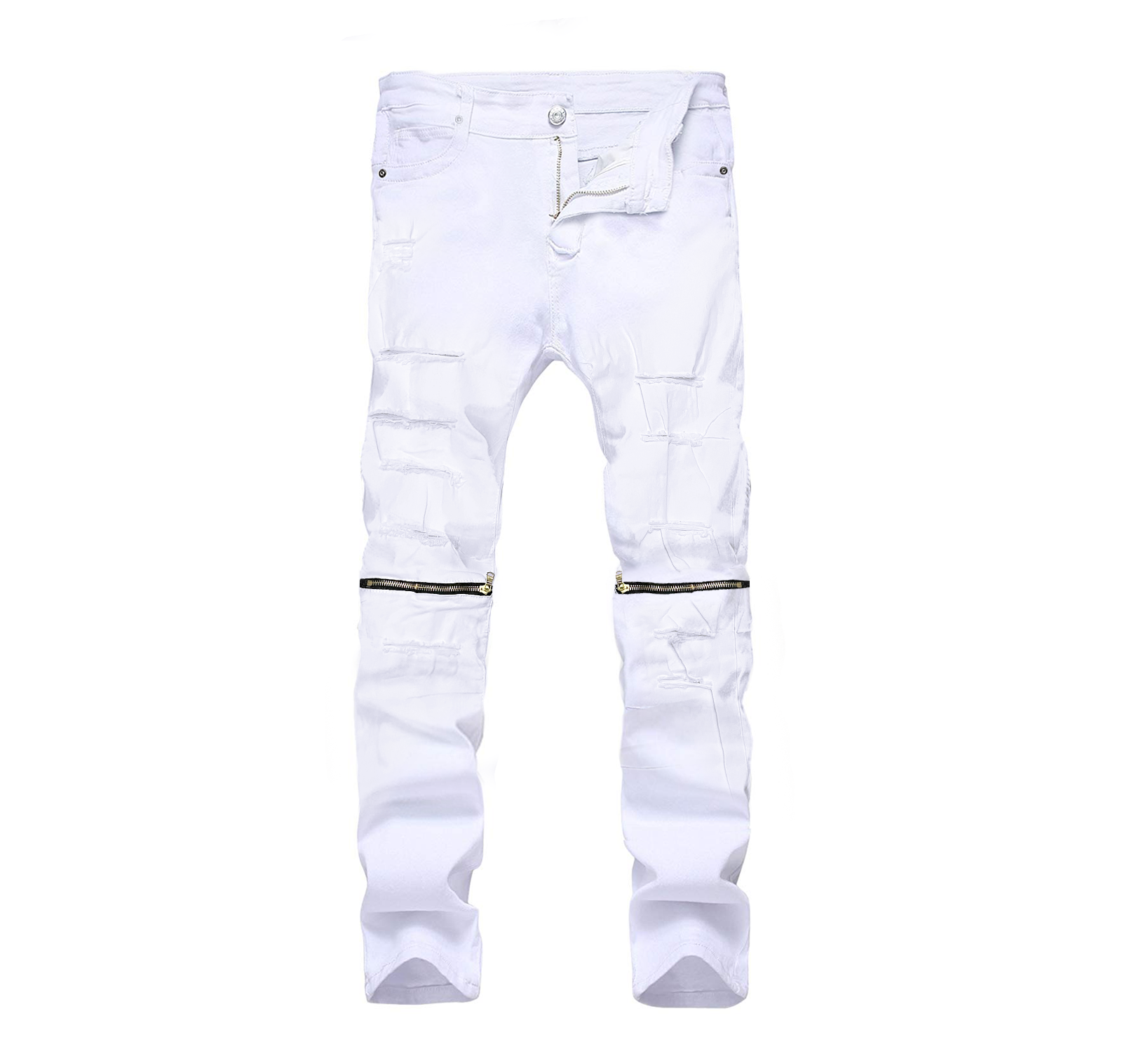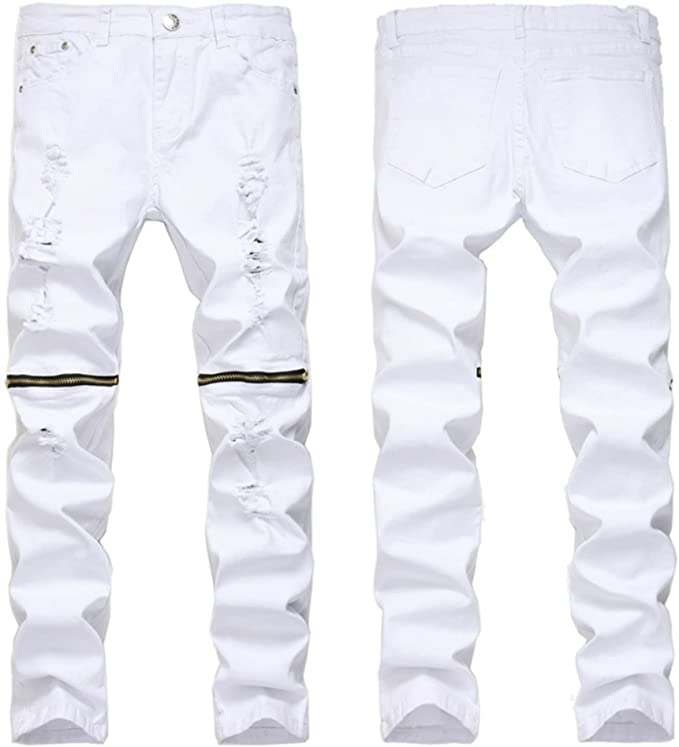skinny ripped zipper jeans white black m5339t rams (Copy)