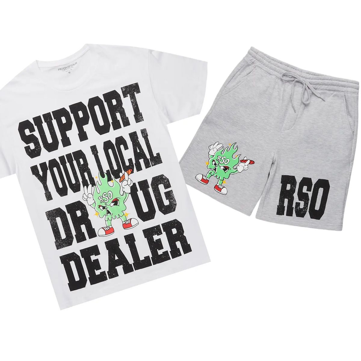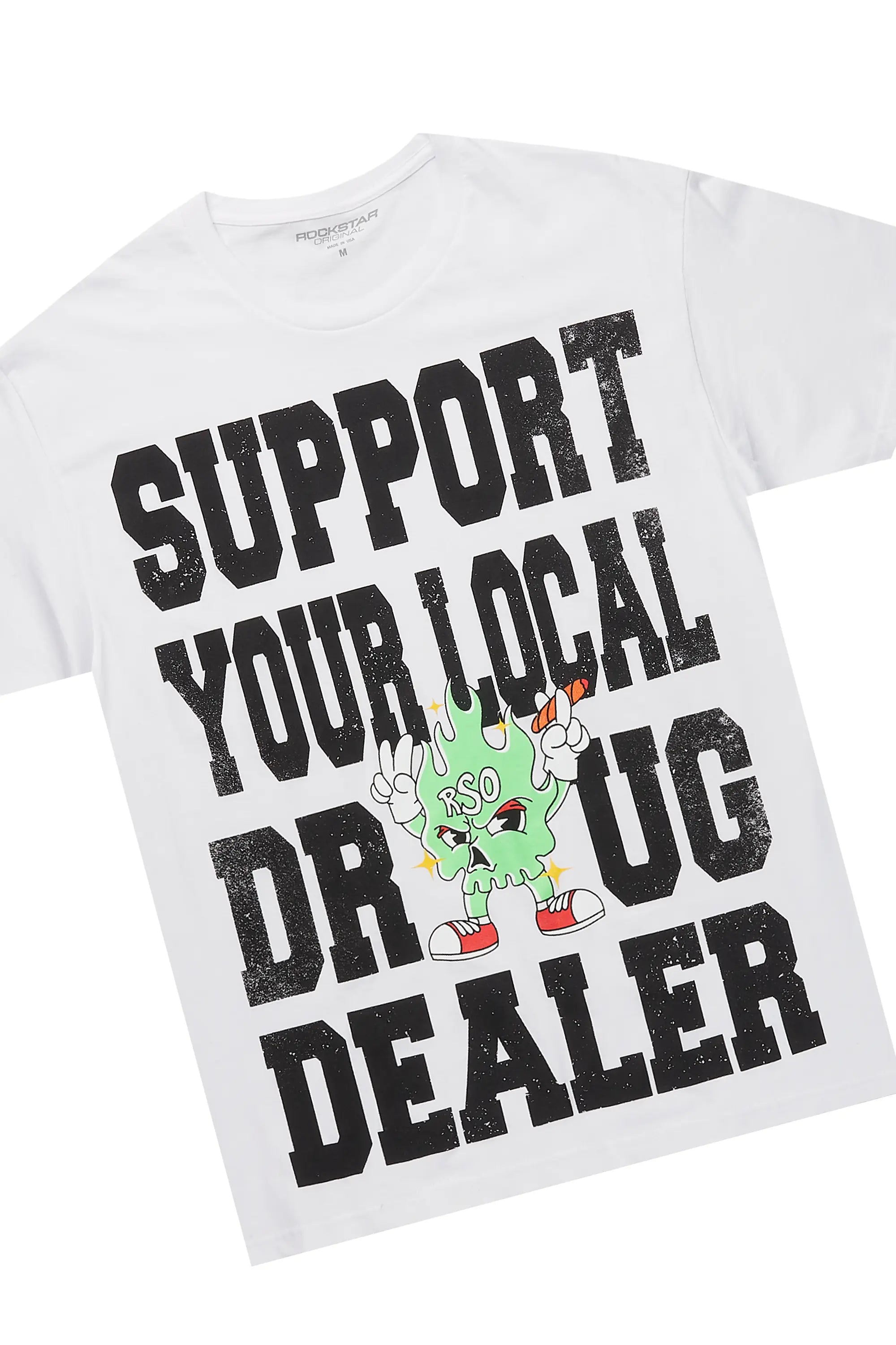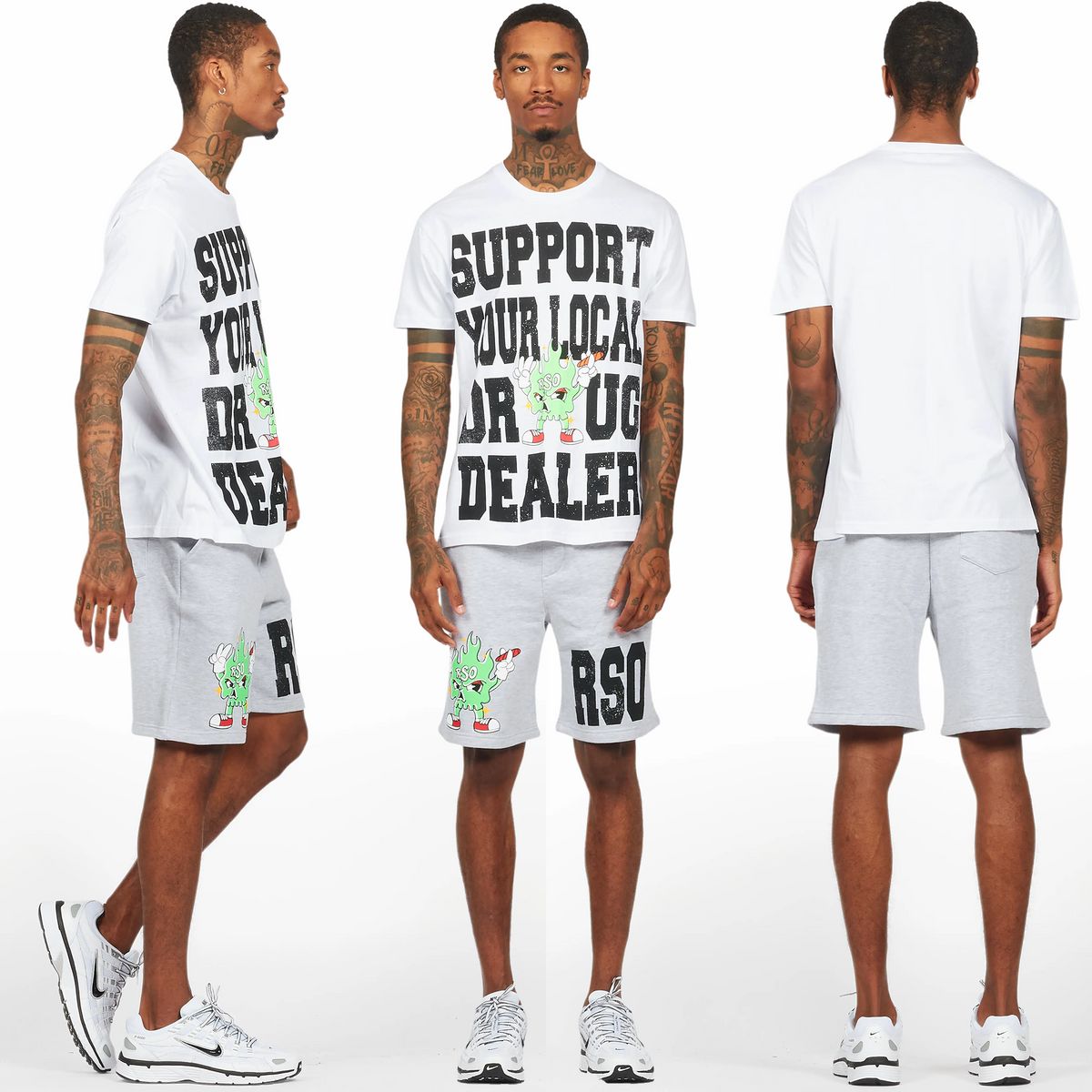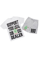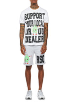 An urban two-piece athleisure tee and short set for men in white. Designed with organic cotton and custom detailing for a lightweight everyday set.