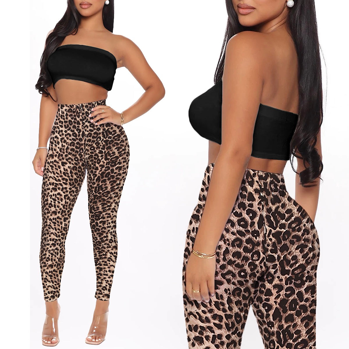 2PC Cheetah Print Leggings + Strapless Top Set ♣