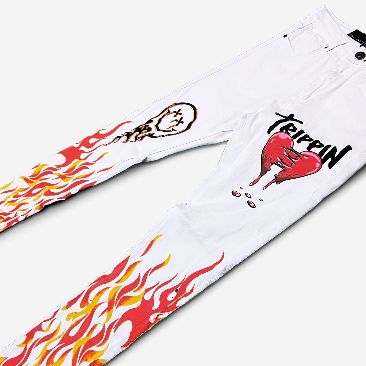2pc Skinny Trippin Flame Jeans+Blessed Flame Sweatshirt ⚡