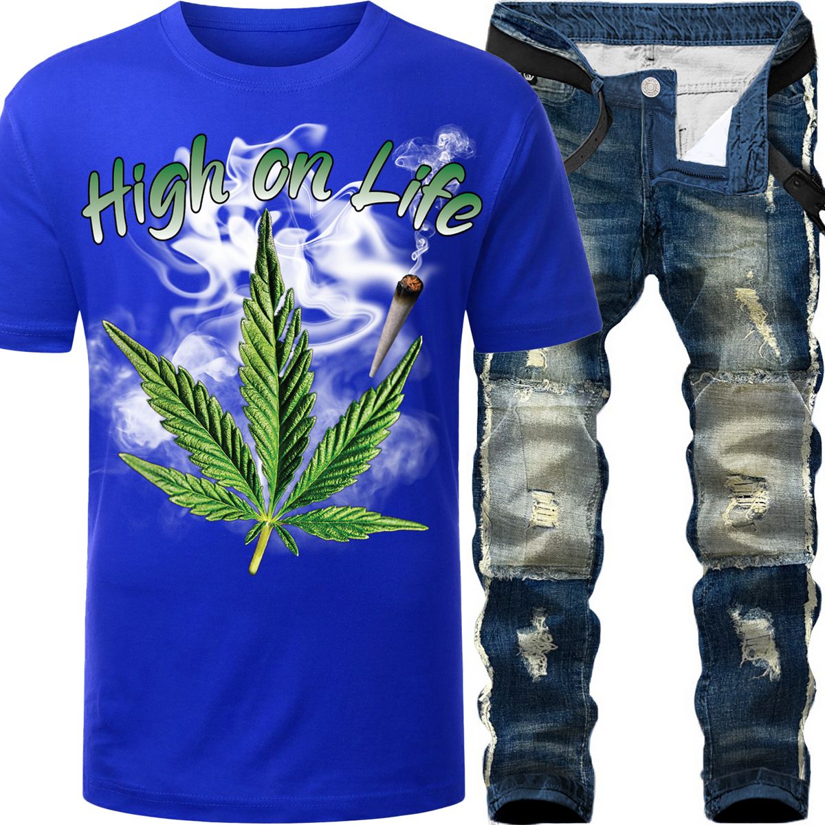 2pc Skinny 2 Tones Ripped Jeans+High on Life T-shirt 💎
