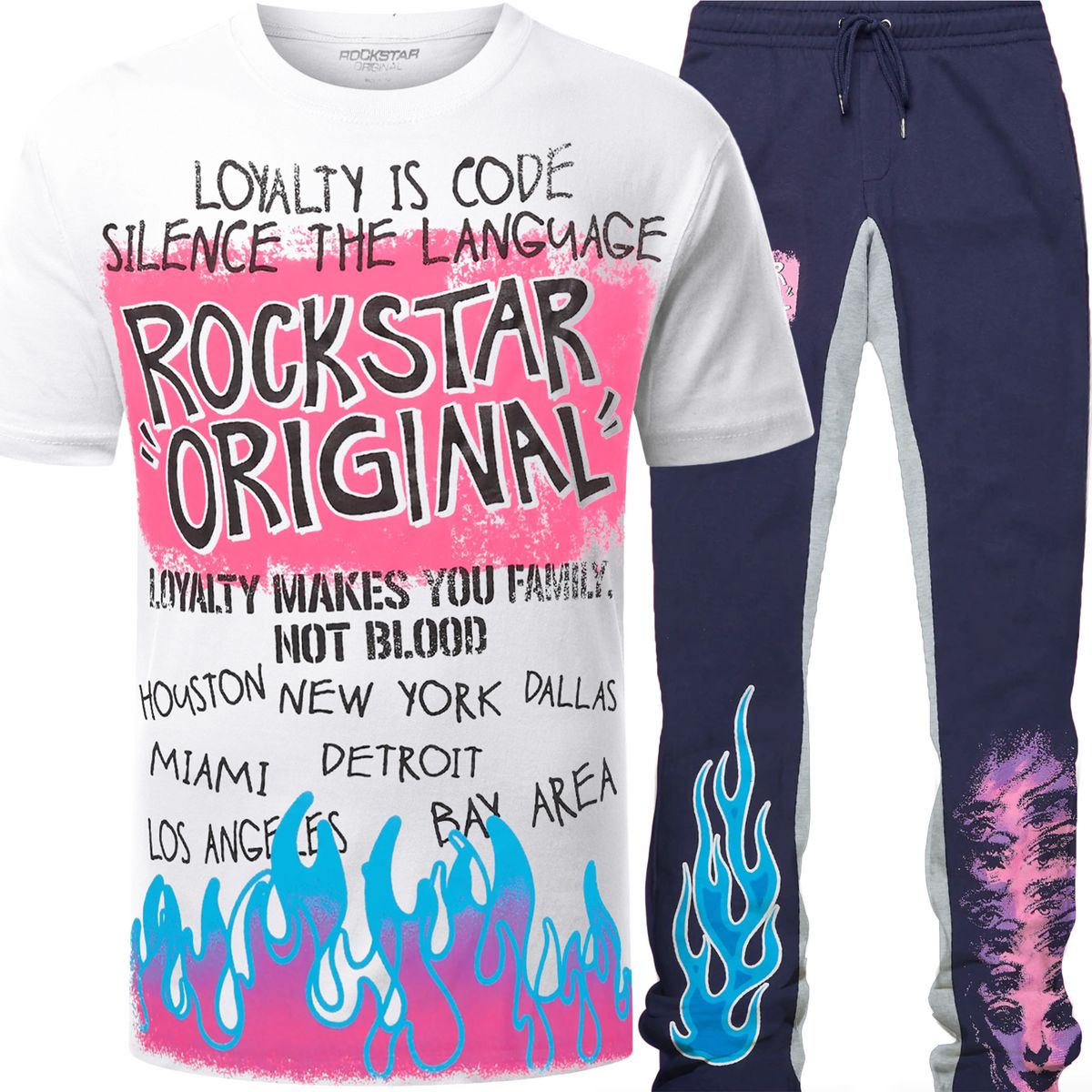 2pc Rockstar Stacked Trackpants+L/S T-shirt ⚡