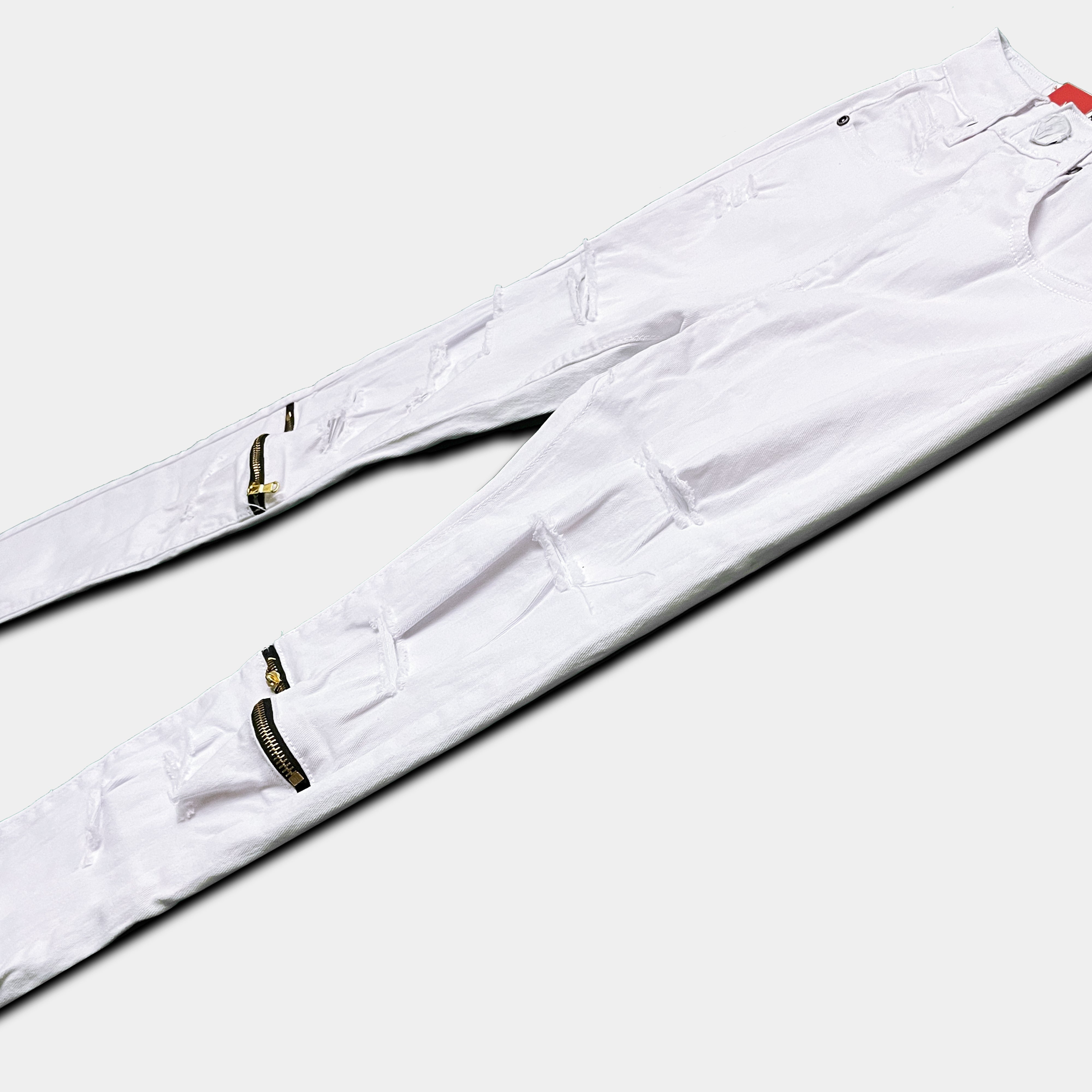 2pc Skinny Ripped Zippers Jeans+Money Talks T 💎