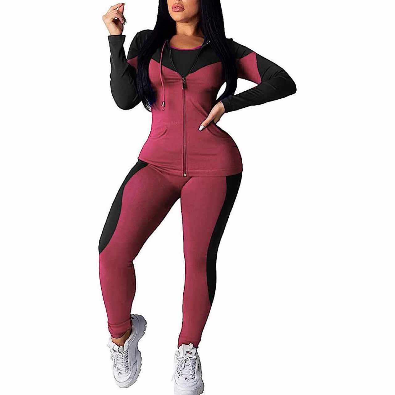 3pc Color Block Tracksuit Set♣