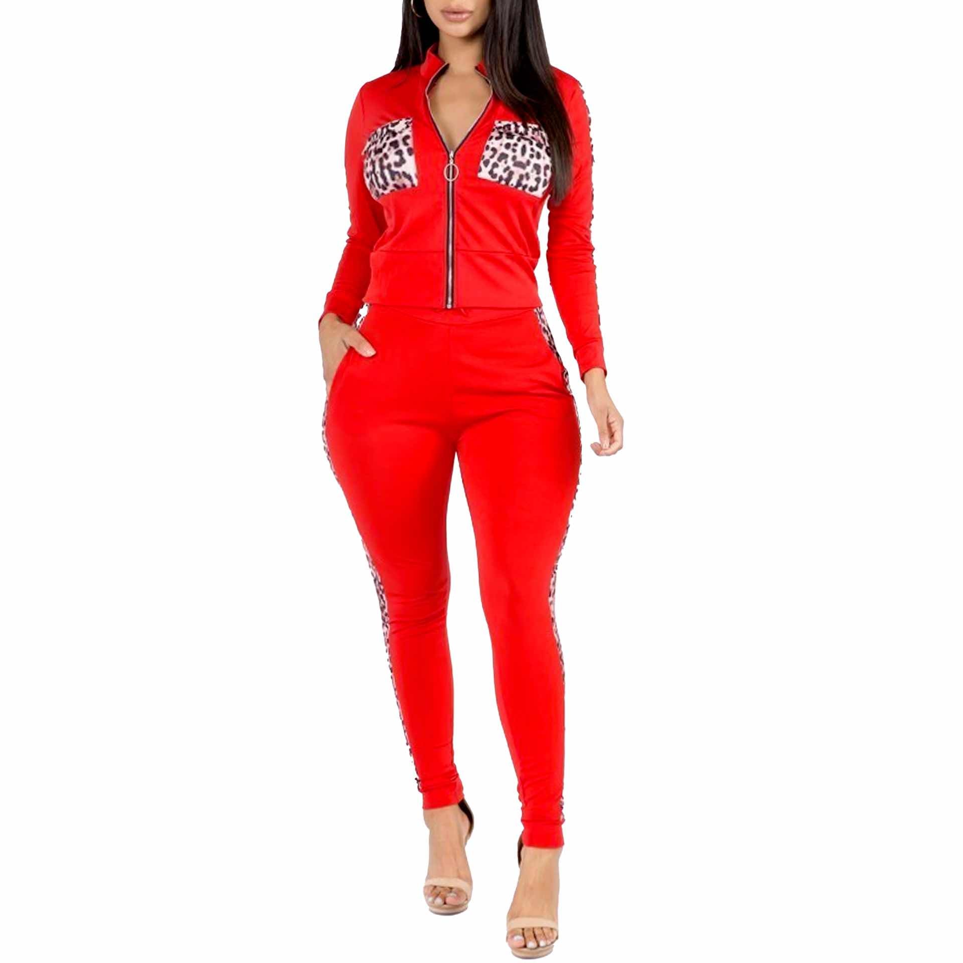 2pc Color Block Leopard Tracksuit 🌸