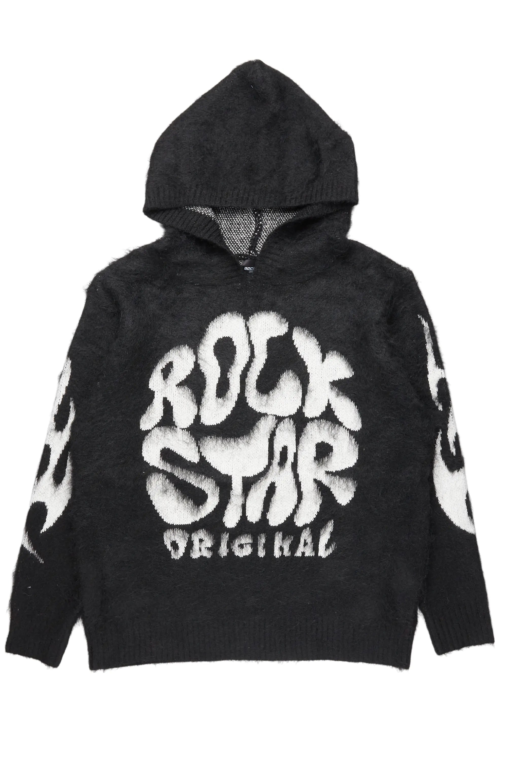 Hakon Black Graphic Knitted Mohair Hoodie