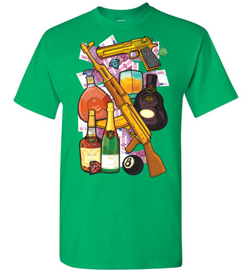 hustler guns and roses print
