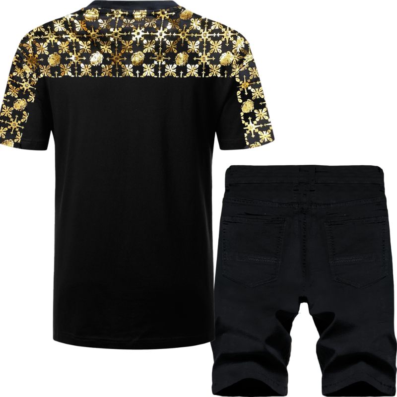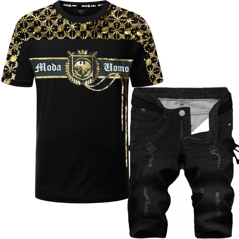 2pc Ripped Denim Shorts+Royal Foil Print ⚡