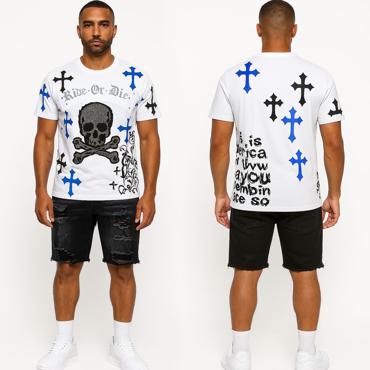 2pc Ripped Denim Shorts+Ride or Die T-shirt ⚡️