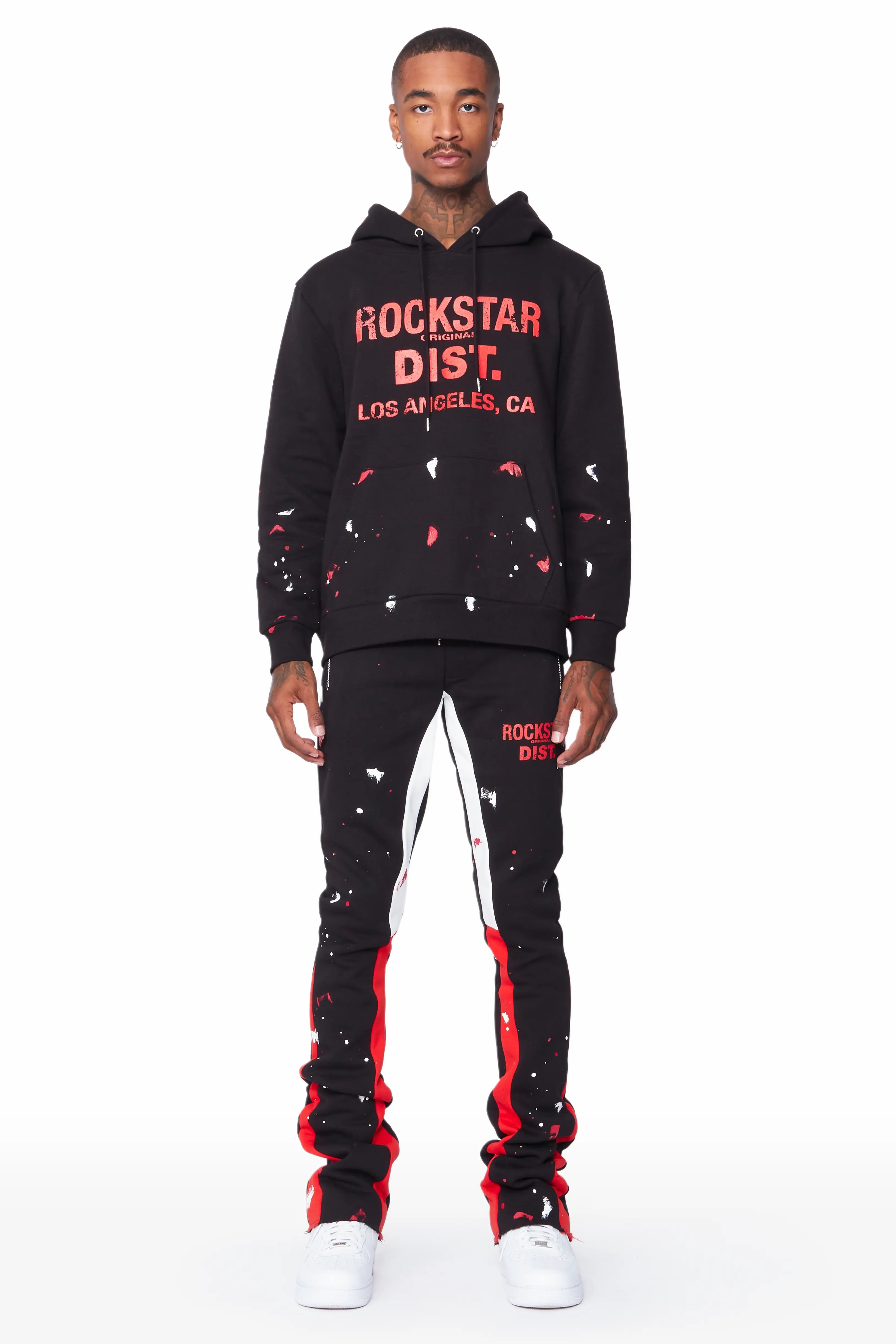 Scottie Black/Red Paint Splatter Hoodie/Stacked Flare Track Set