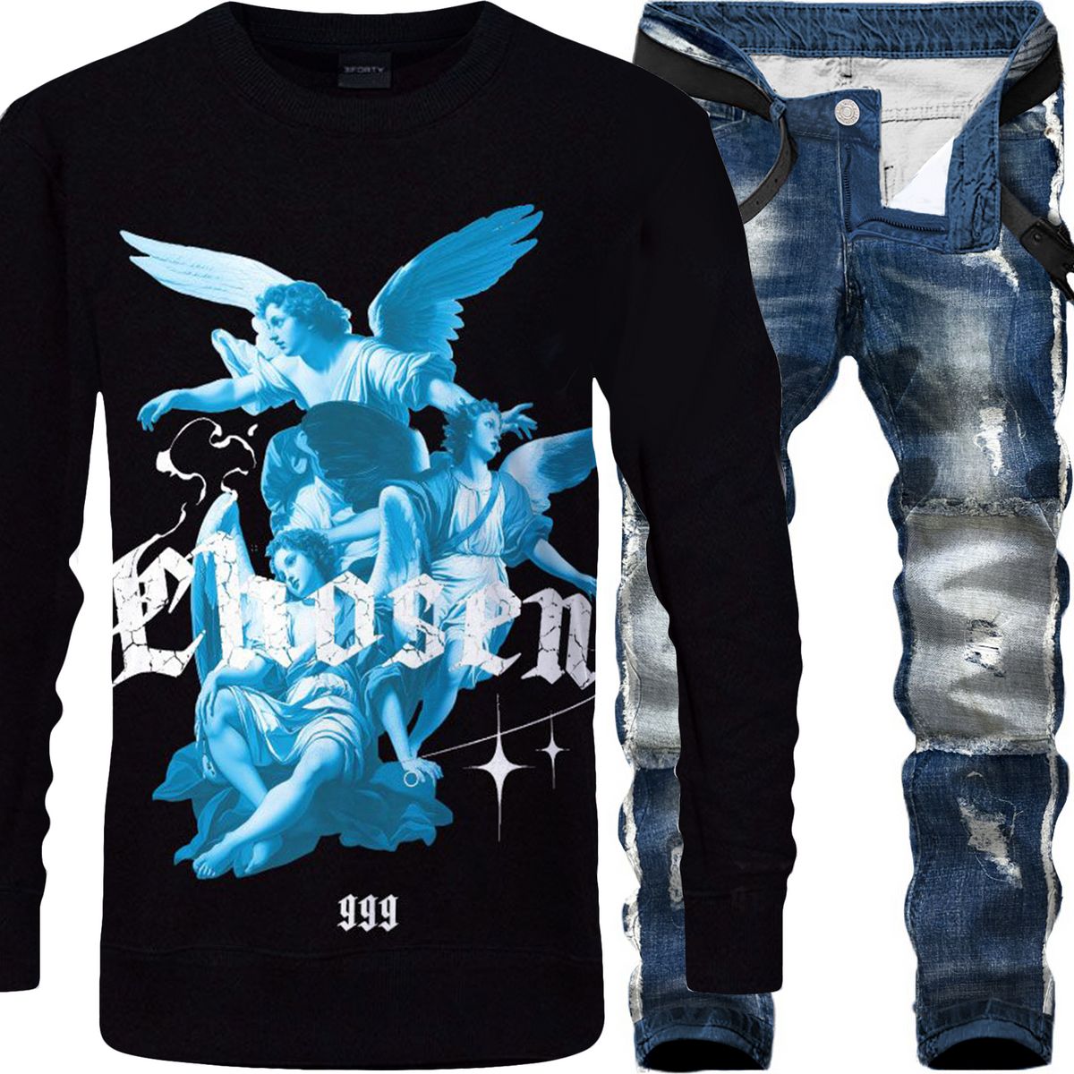 2pc Skinny 2 Tones Ripped Jeans+Chosen Angles Sweatshirt β‘