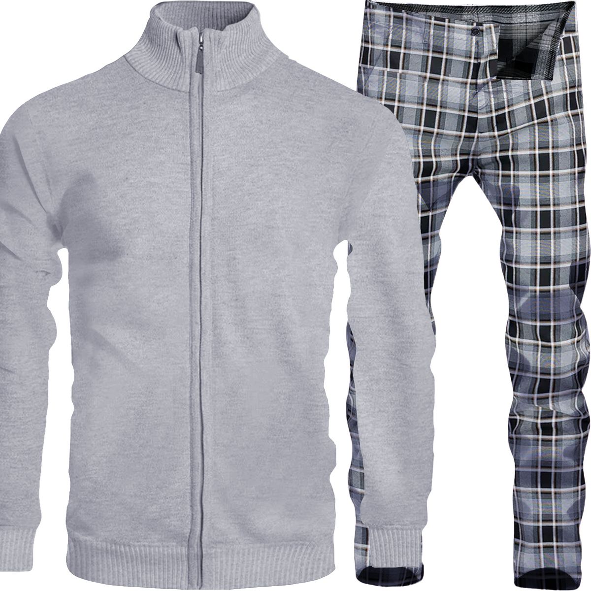 2pc Slim Plaid Pants+Full Zip Up Sweater ⚜