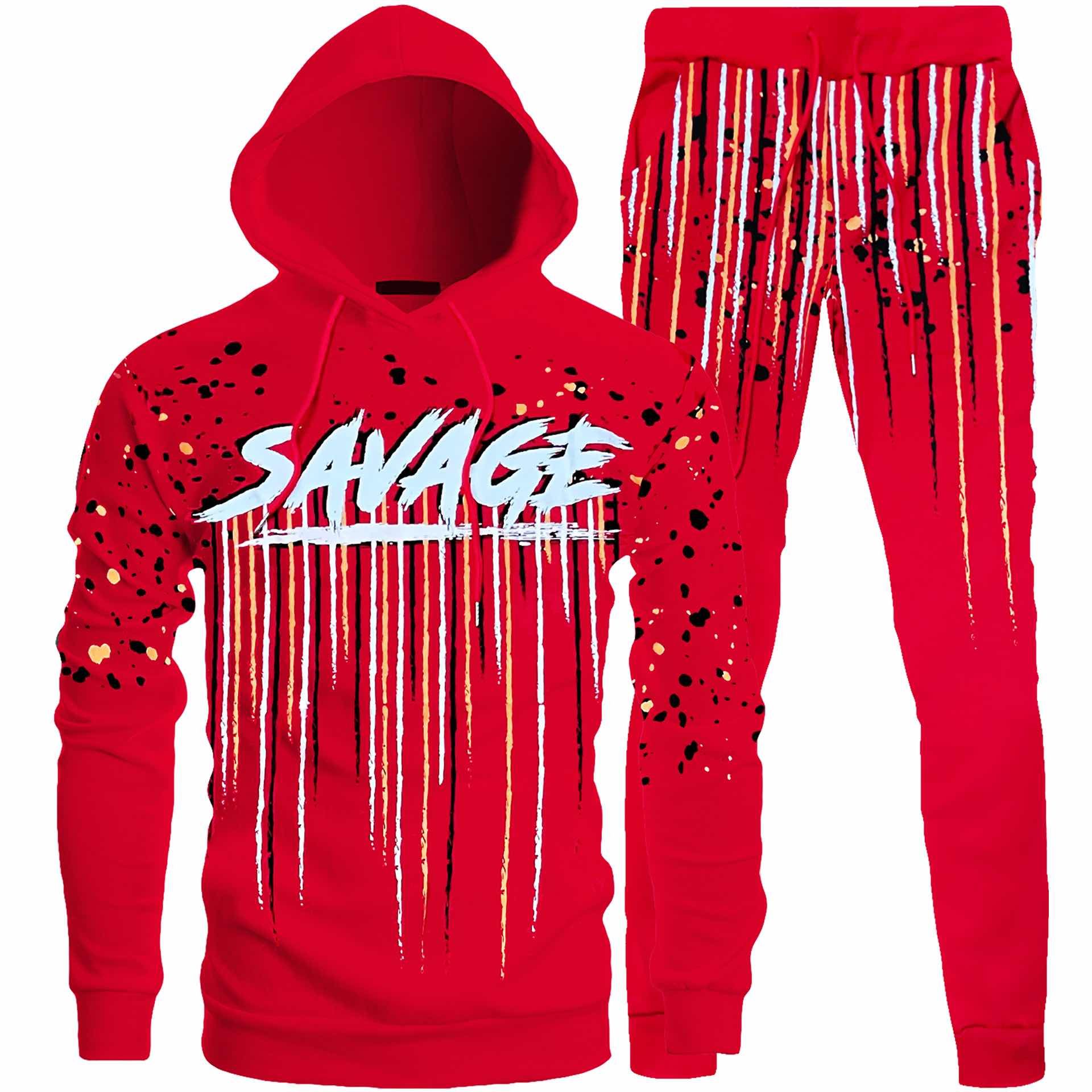 Bundle - 1085783 - 2pc Savage Dripping Hooded Tracksuit - red - M1022J - M1022H/M2535