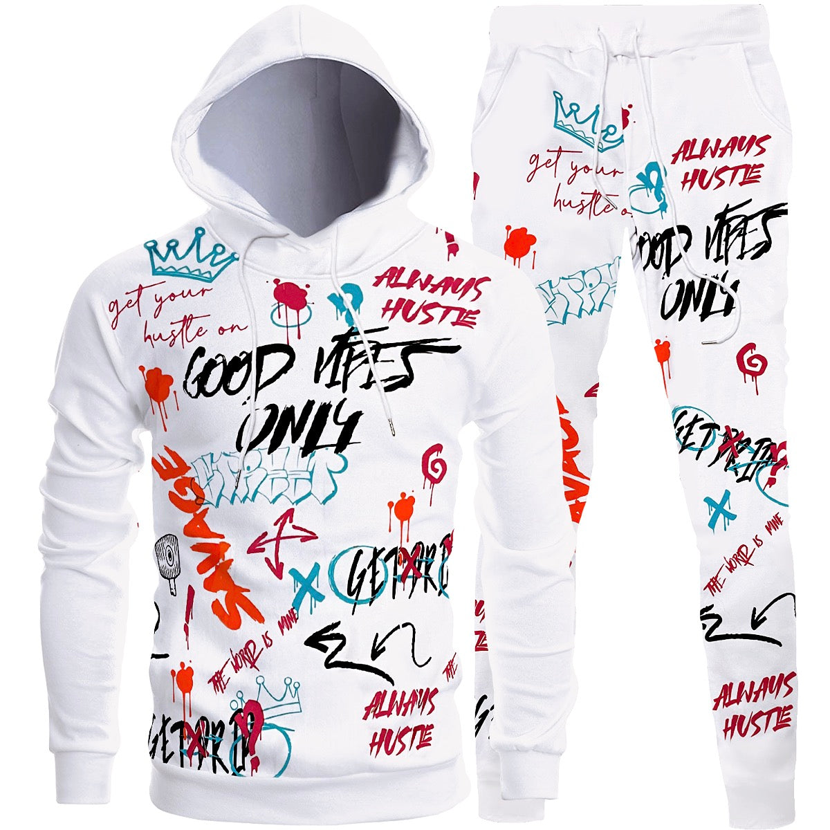 Bundle - 1077080 - 2pc Good Vibes Graffiti Hooded Tracksuit - white - M1031J - M2537/M1031H