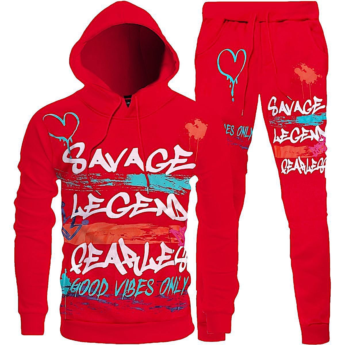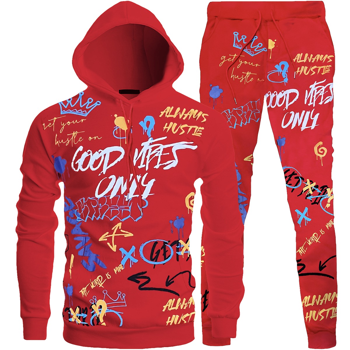 Bundle - 1092123 - 2pc Good Vibes Graffiti Hooded Tracksuit - red - M1031J - M1031H/M2537