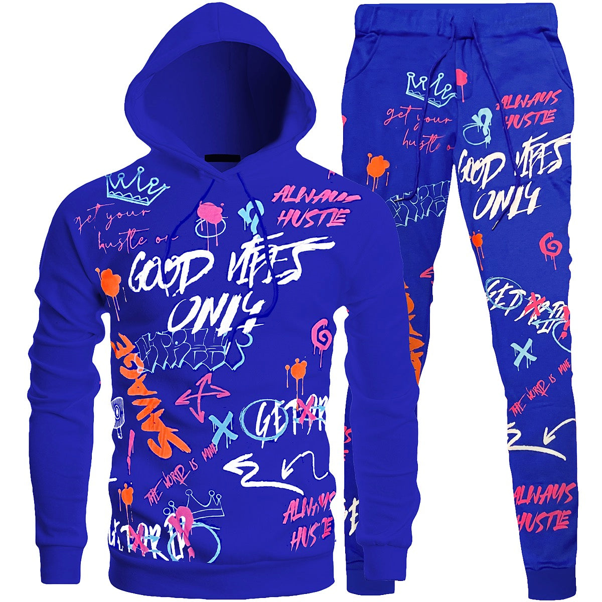 Bundle - 1087135 - 2pc Good Vibes Graffiti Hooded Tracksuit - blue - M1031J - M1031H/M2537