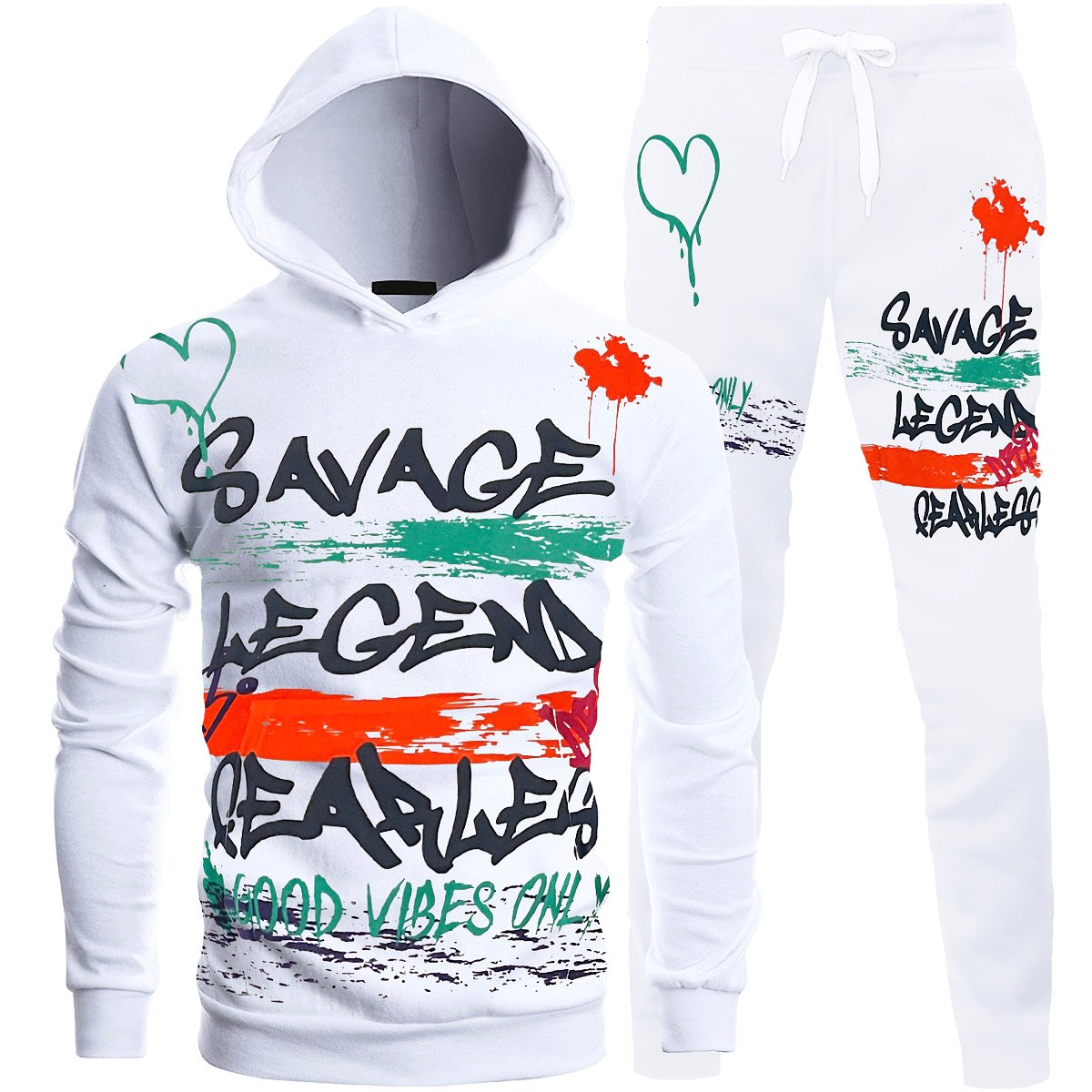 Bundle - 1083546 - 2pc Savage Graffiti Hooded Tracksuit - white - M1032J - M1032H/M2538