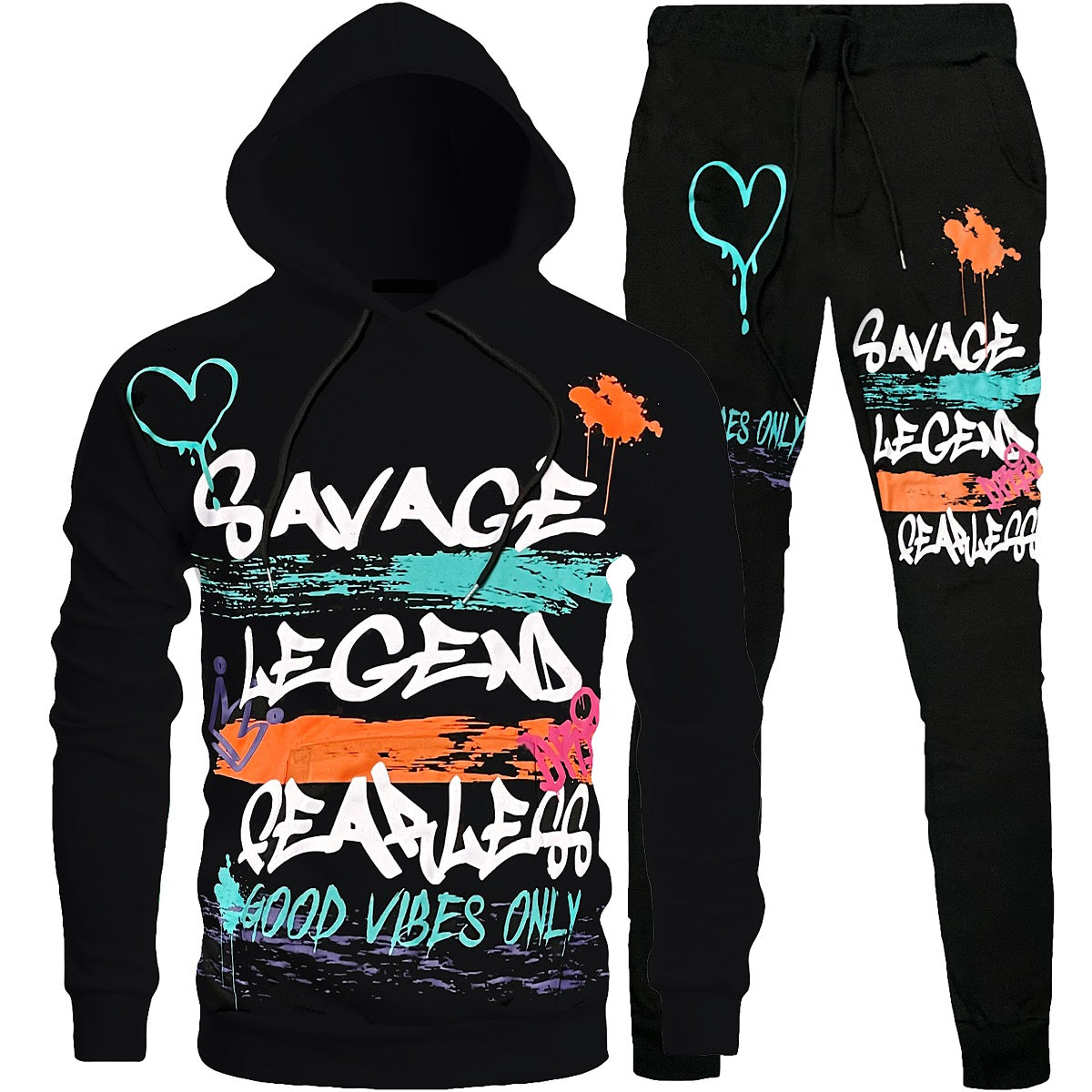 Bundle - 1088708 - 2pc Savage Graffiti Hooded Tracksuit - black - M1032J - M1032H/M2538