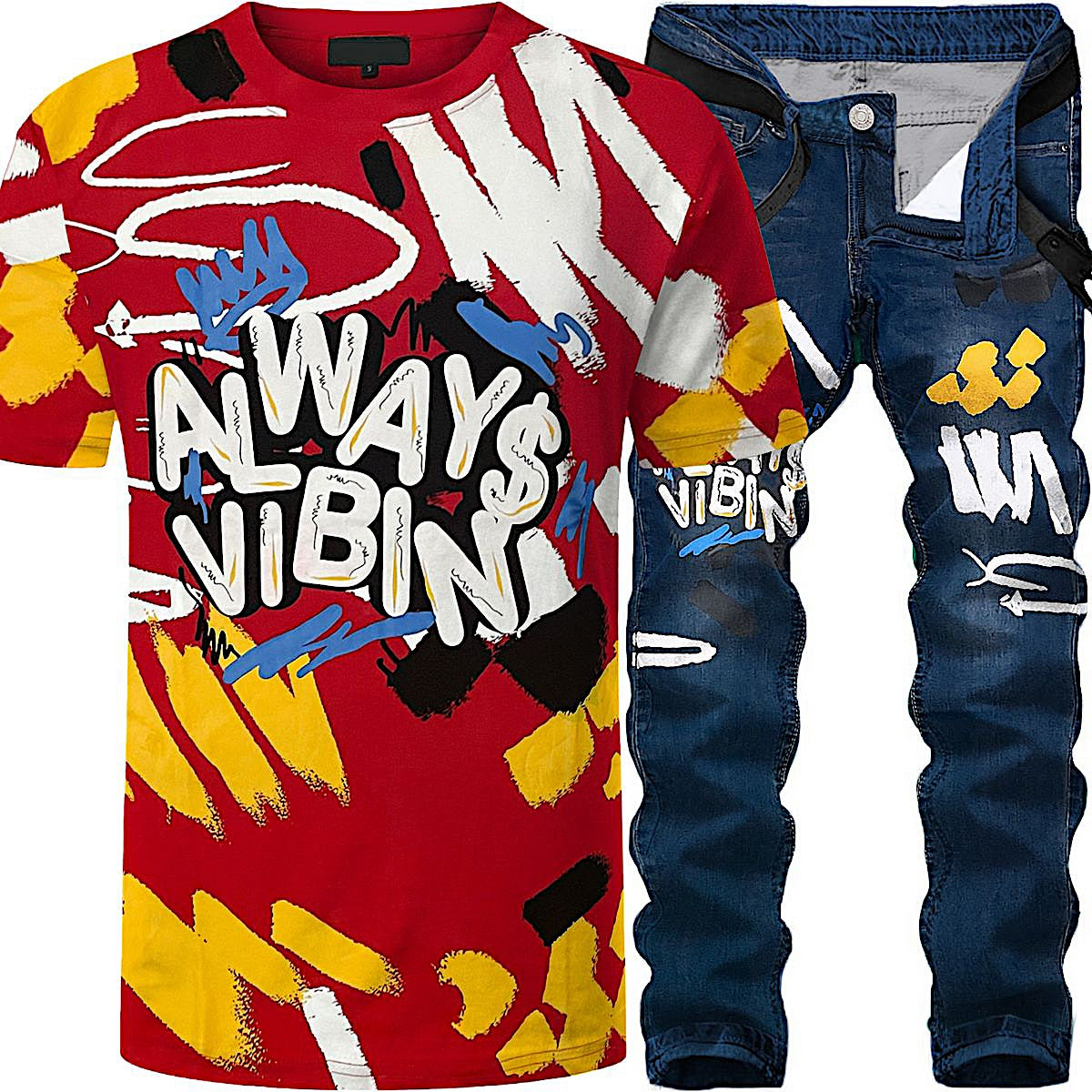 Bundle - 1120076 -Vibini T-shirt+Vibin Graffiti Jeans- RED + Indigo- M2545 + M5464D- GOTit/Waimea+RAMS/waimea