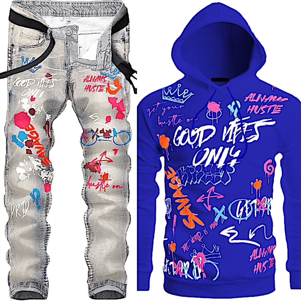 Bundle - 1115306 -Good vibes Hoodie+Good Vibes Graffiti Jeans- ROYAL +MED STONE- M1031H/M2537 + M5468D - GOTit/Waimea+waimea/RAMS