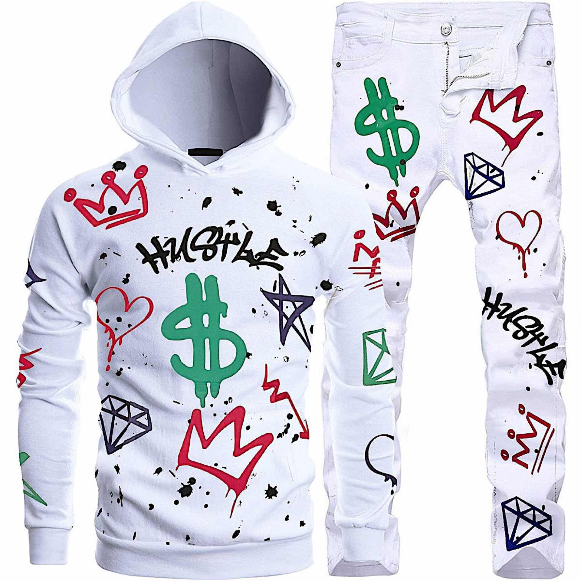 Bundle - 1102795 -Hustle Graffiti Hoodie +Skinny Hustle Graffiti Jeans - WHITE- M2536 + M5460D- GOTit/Waimea+RAMS/waimea