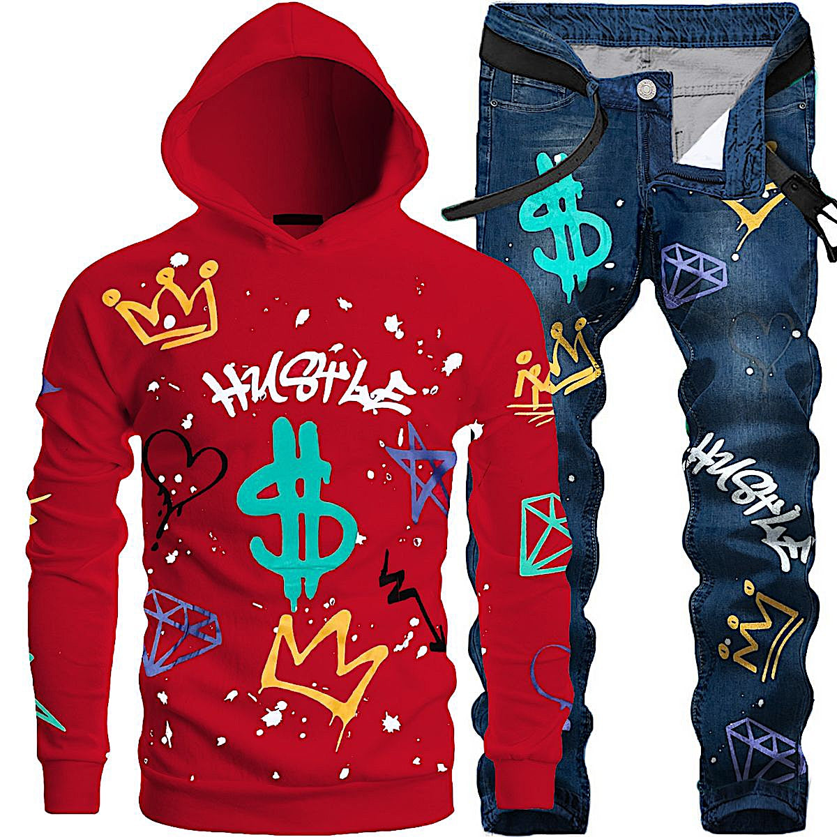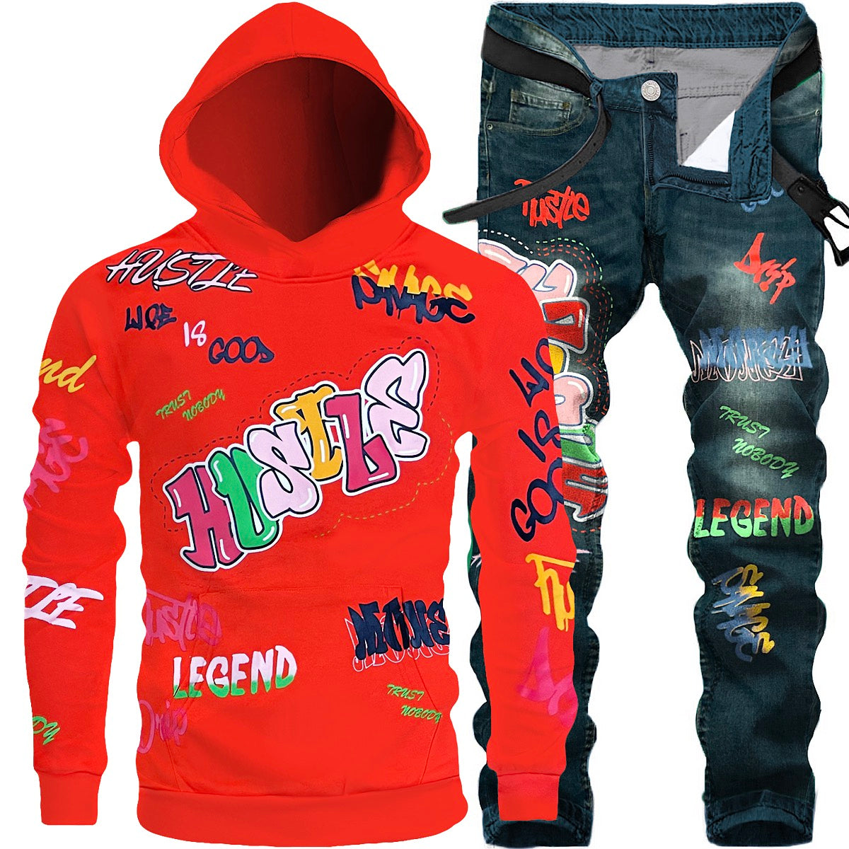 Bundle - 1121299 -Hustle Graffiti Hoodie+Skinny Hustle Graffiti Jeans- RED+ INDIGO- M2536 + M5460D- GOTit/Waimea+RAMS/waimea
