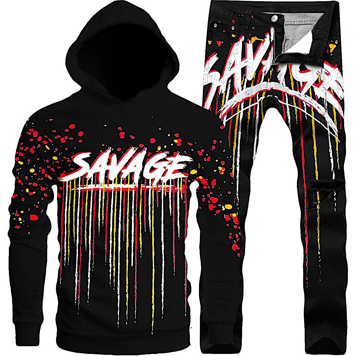 Bundle - 1146263 -Savage Drip Hoodie+Savage dripping Jeans- BLACK +LT BLUE- M1022H/M2535+ M5455D- GOTit/Waimea+RAMS/waimea