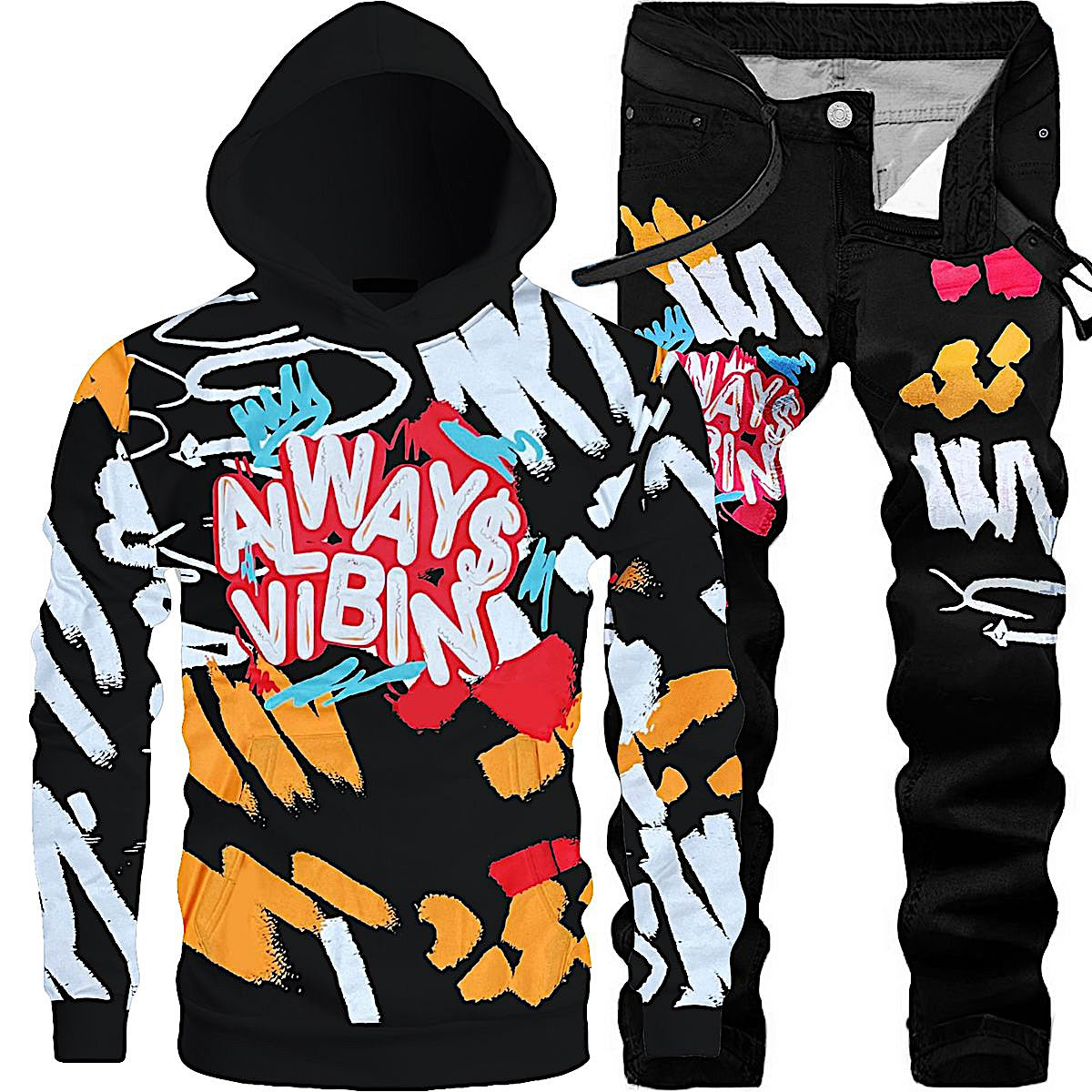 Bundle - 1105250 -Vibin Graffiti Hoodie+Vibin Graffiti Jeans - Black- M2540 + M5464D- GOTit/Waimea+RAMS/waimea