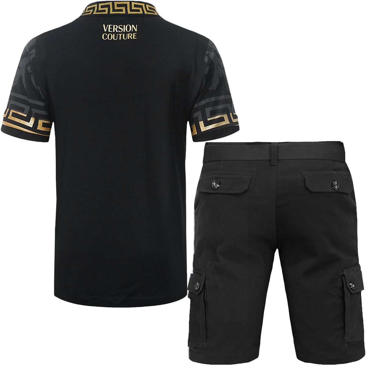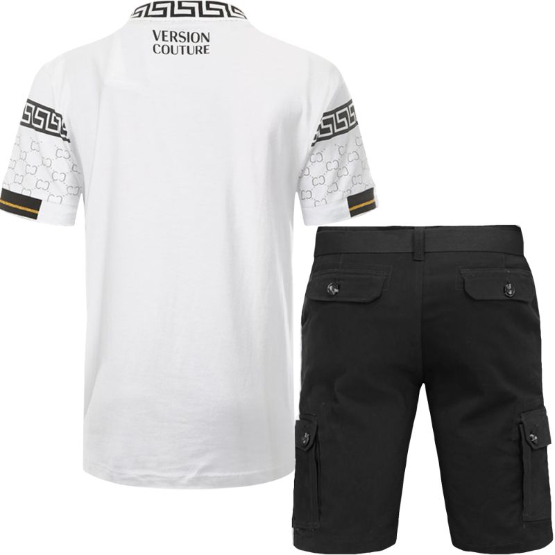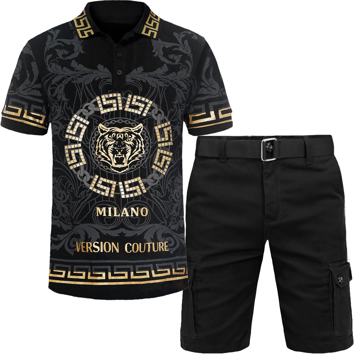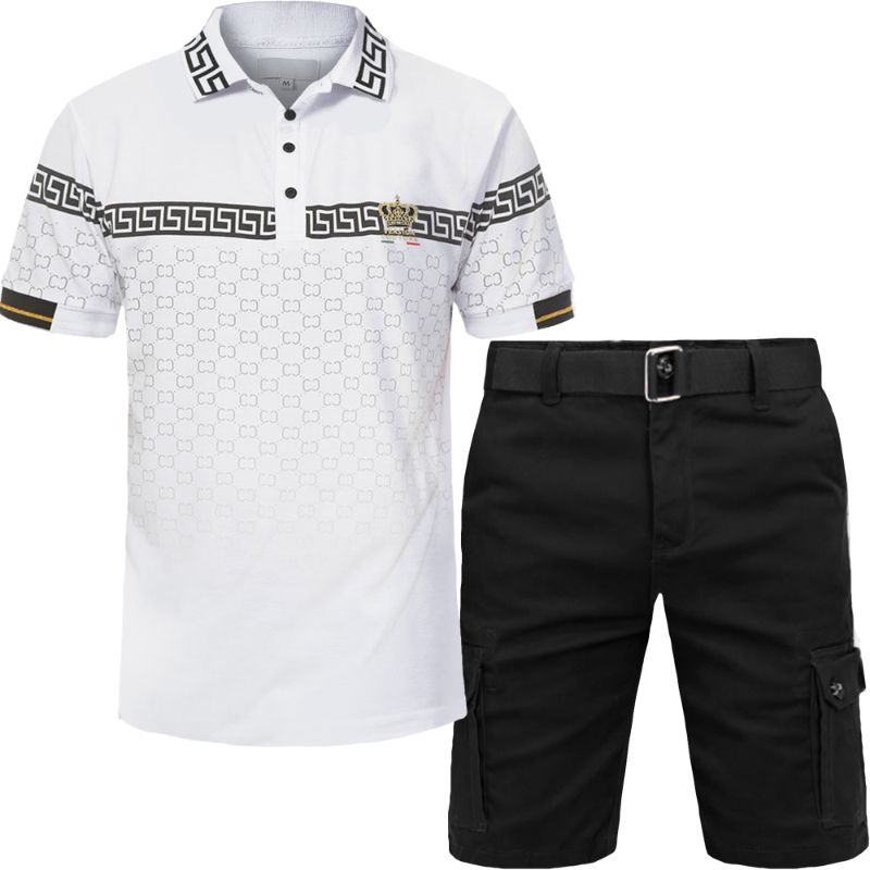 2pc Belted Cargo Shorts+Royal Print Polo Shirt ⚡️