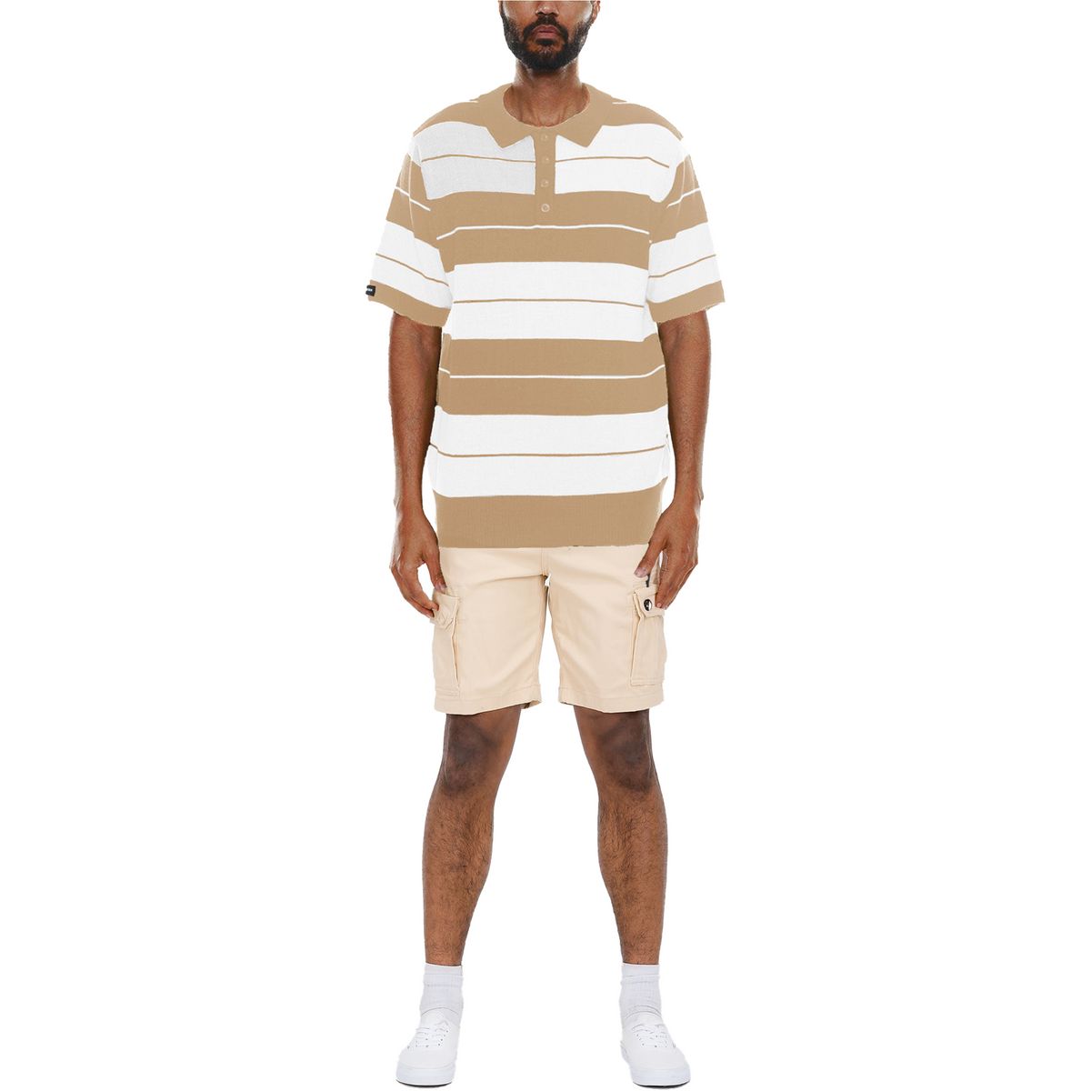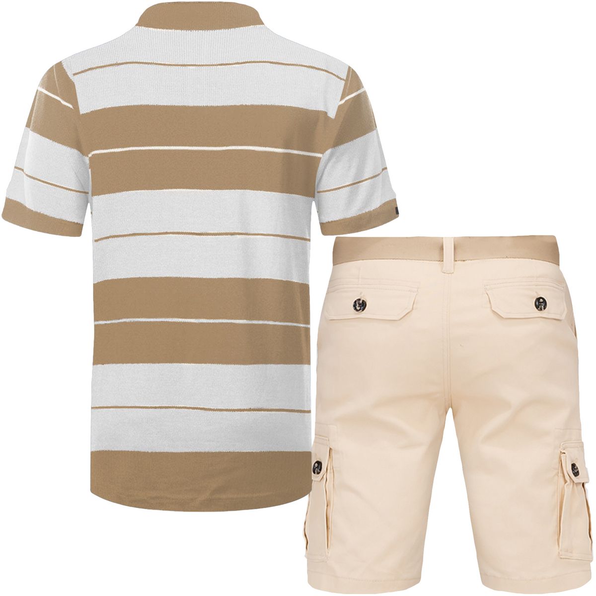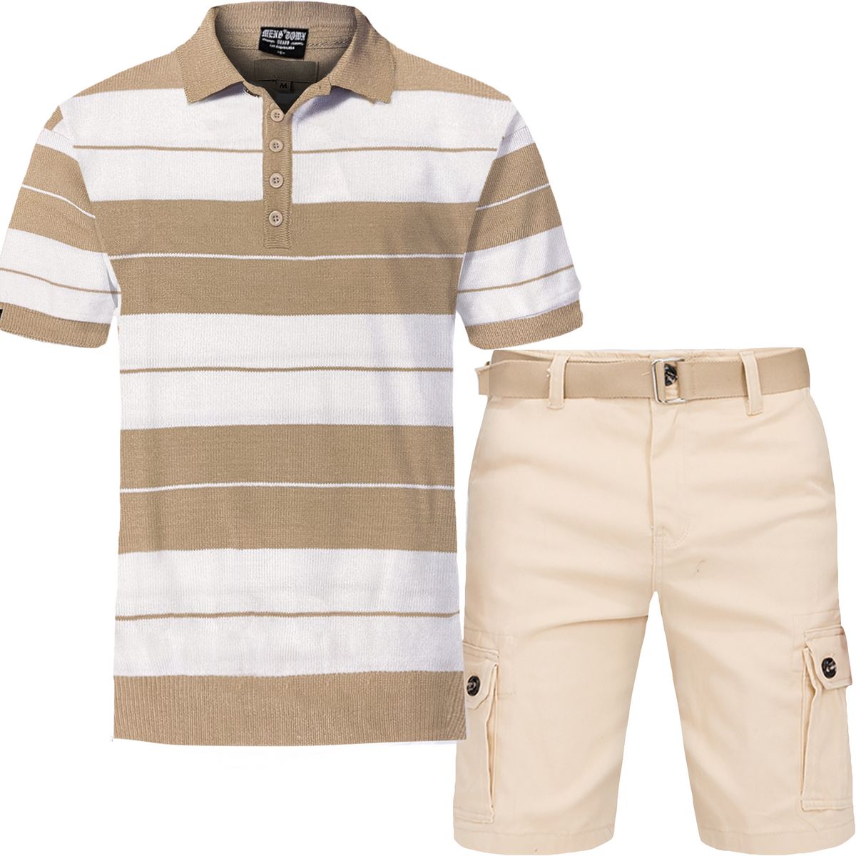 2pc Belted Cargo Shorts+Striped Polo Shirt ⚜