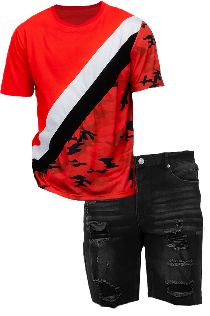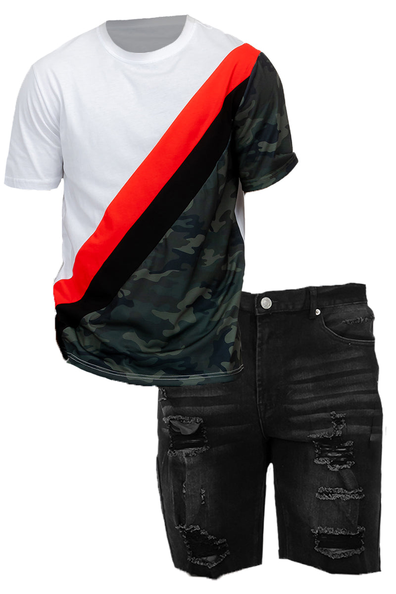 Camo Color Block and Denim Short Set