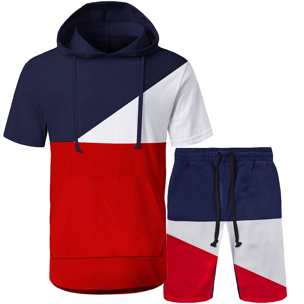 2pc Color Block Hooded Shirt+Shorts Set 💎