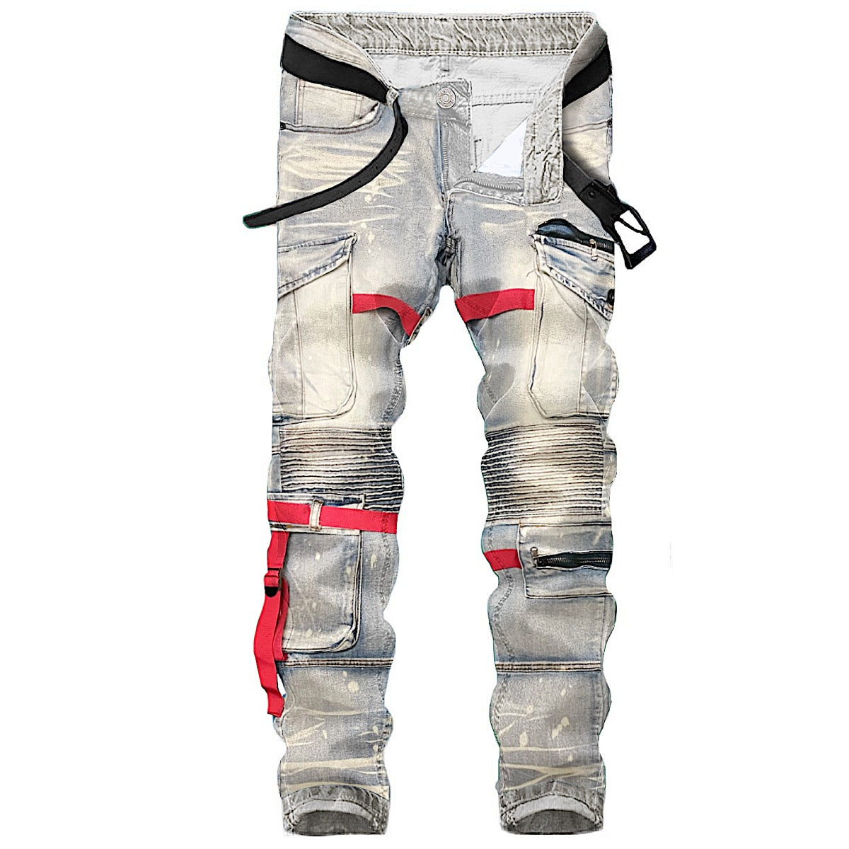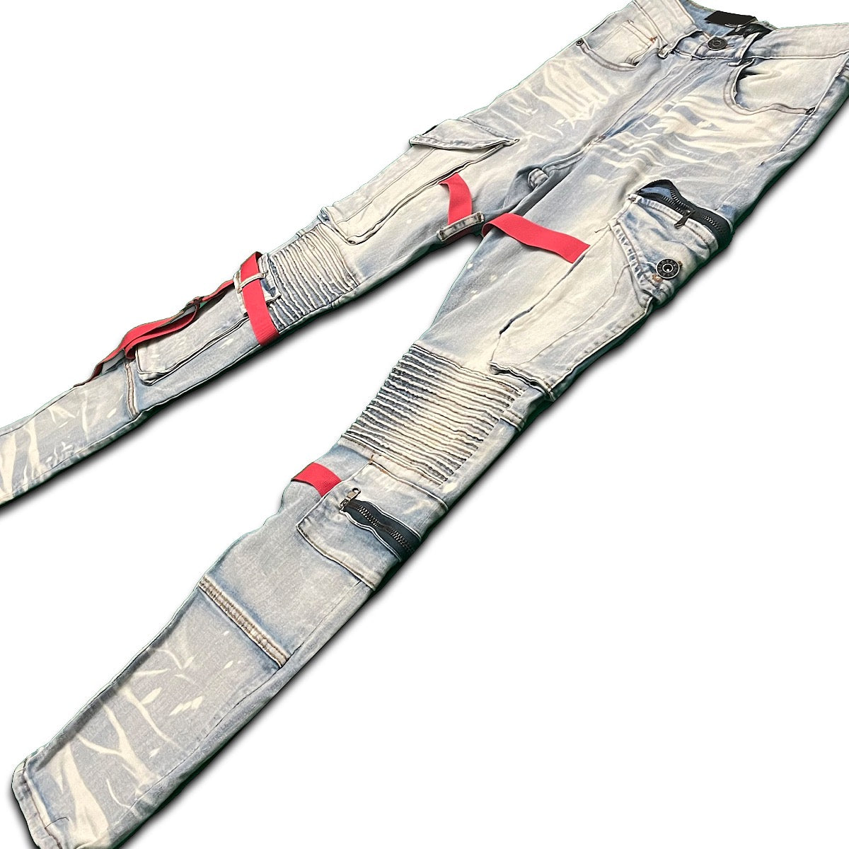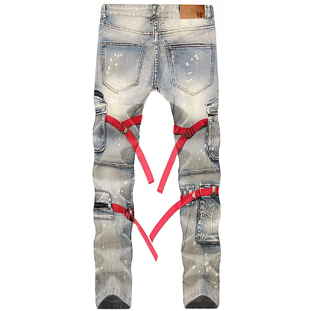 Skinny Biker Cargo Straps Splatter Jeans ⚡️
