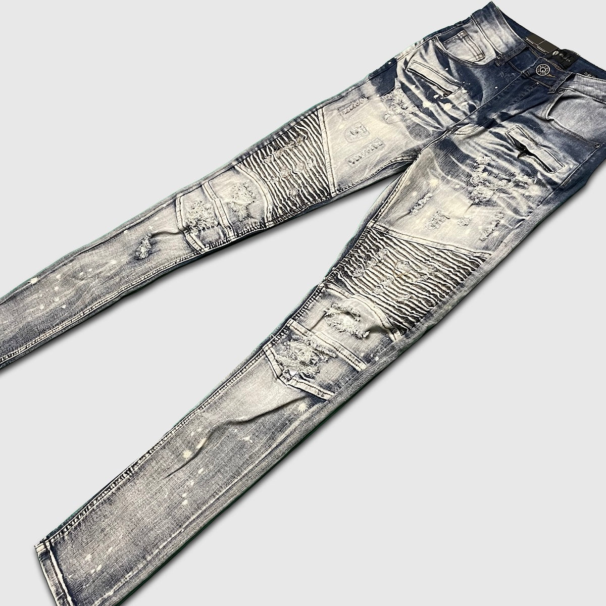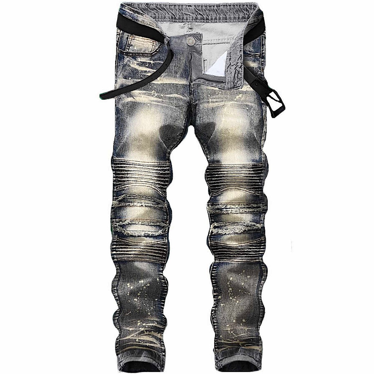 Slim Splatter Acid Wash Biker Jeans π