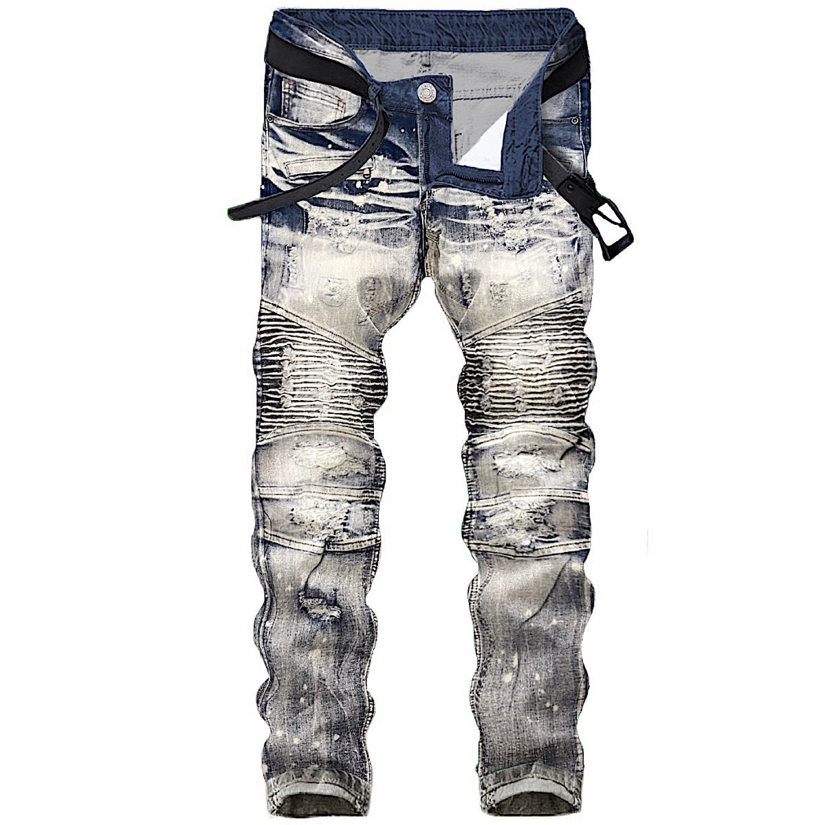 Skinny Ripped Biker Splatter Jeans π