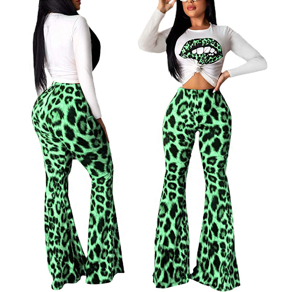 2pc Leopard L/S Crop Top and Flare Pants Set 🌸