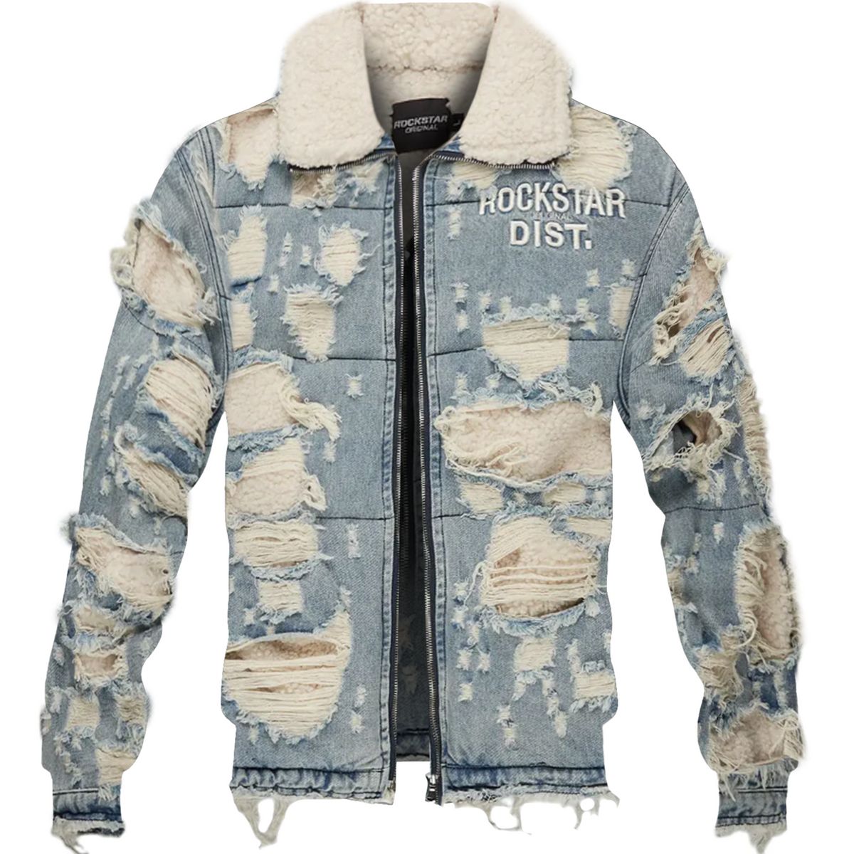 Rockstar Warm Lining Ripped Denim Puffer Jacket⚡️