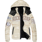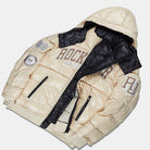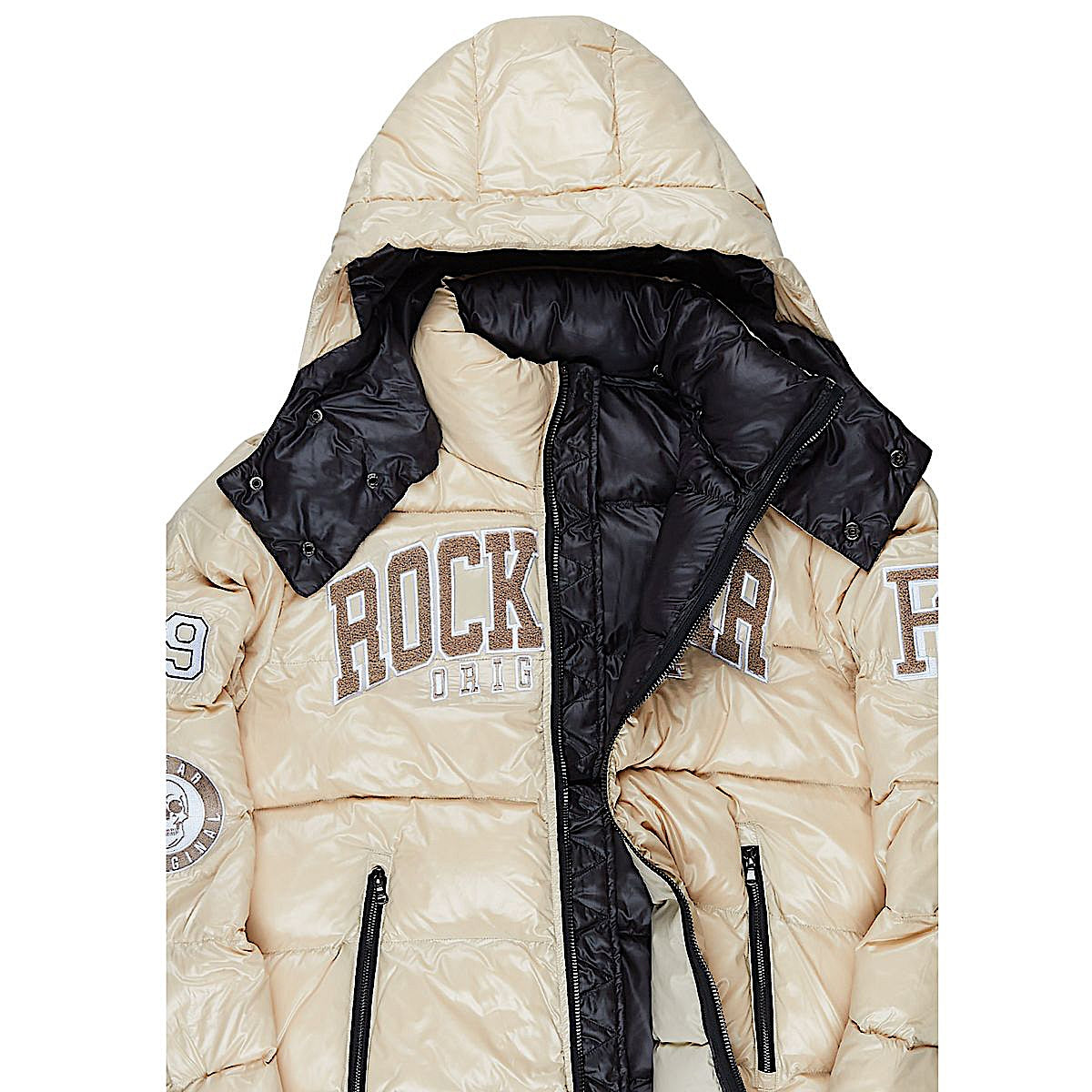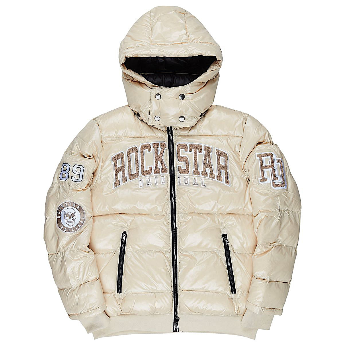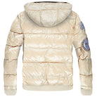 An urban quilted puffer jacket for men in beige. Designed with water-resistant fabric for optimal warmth.