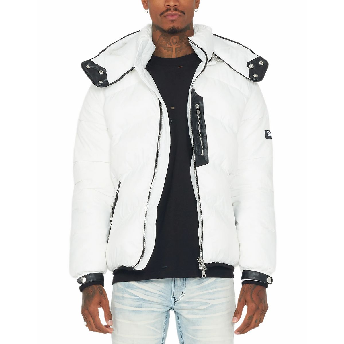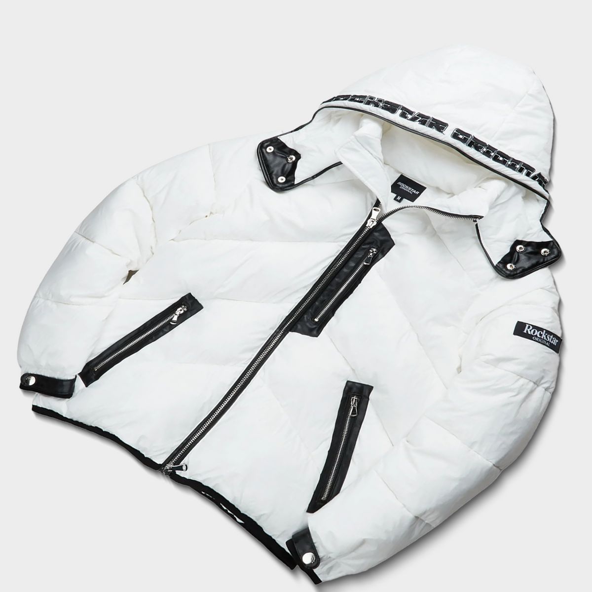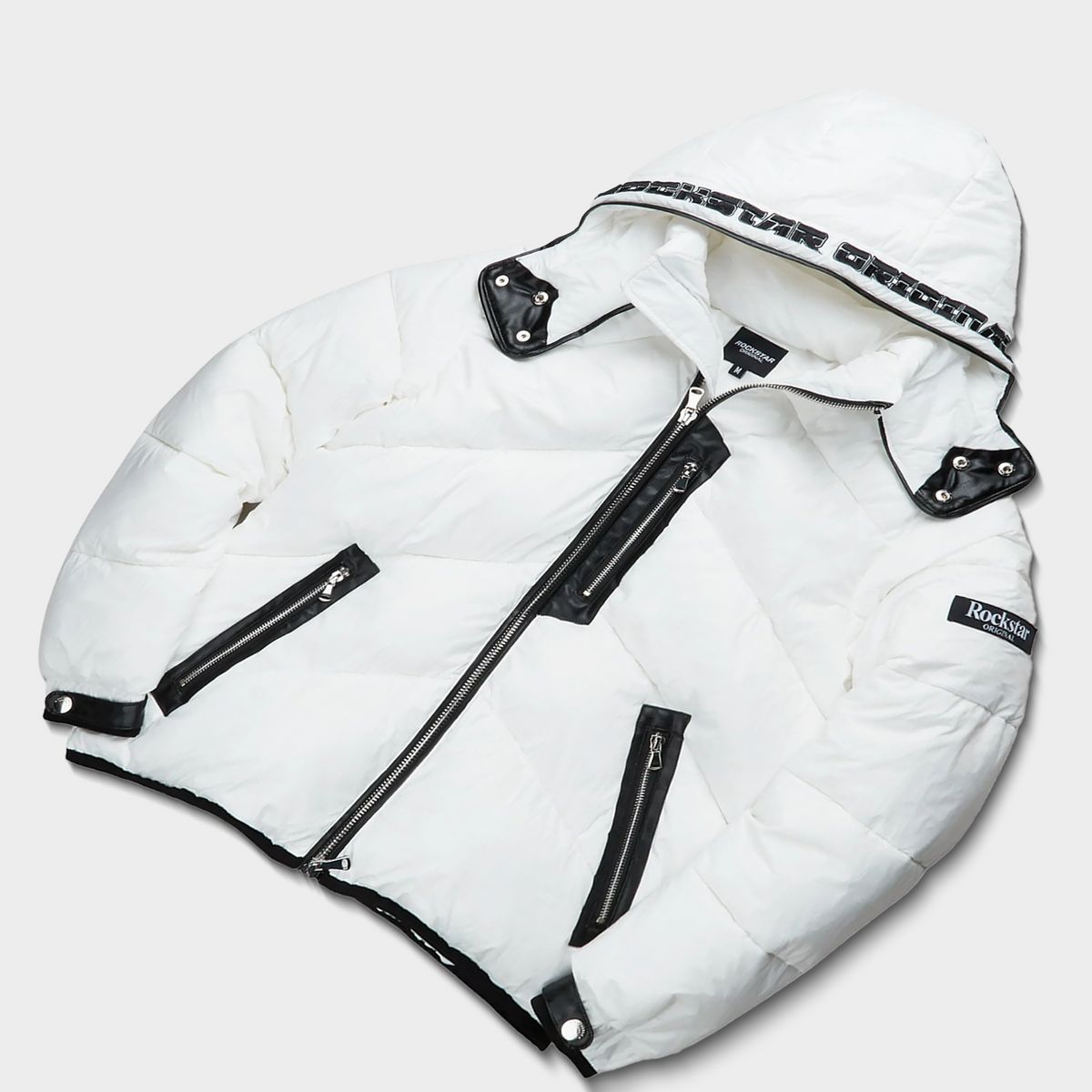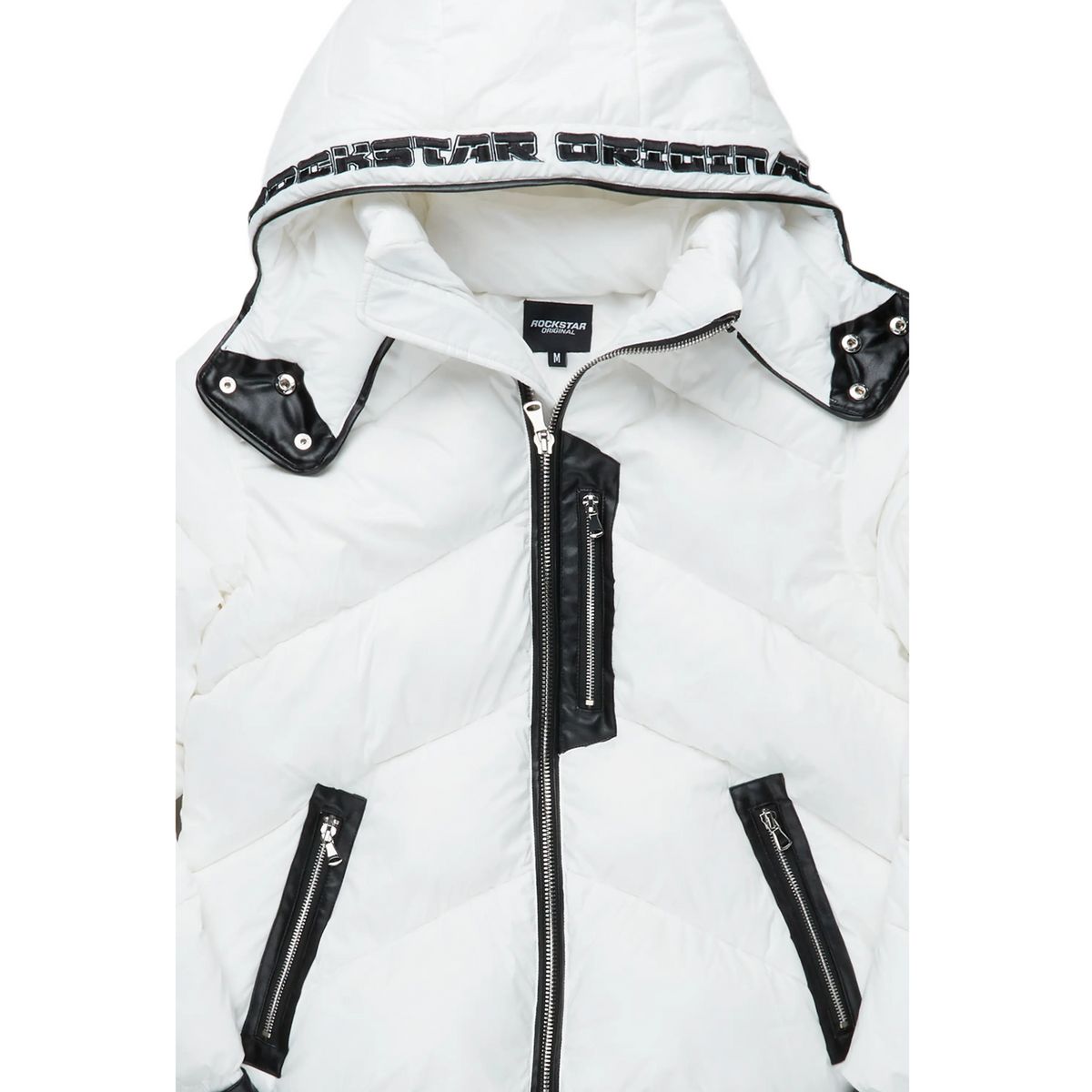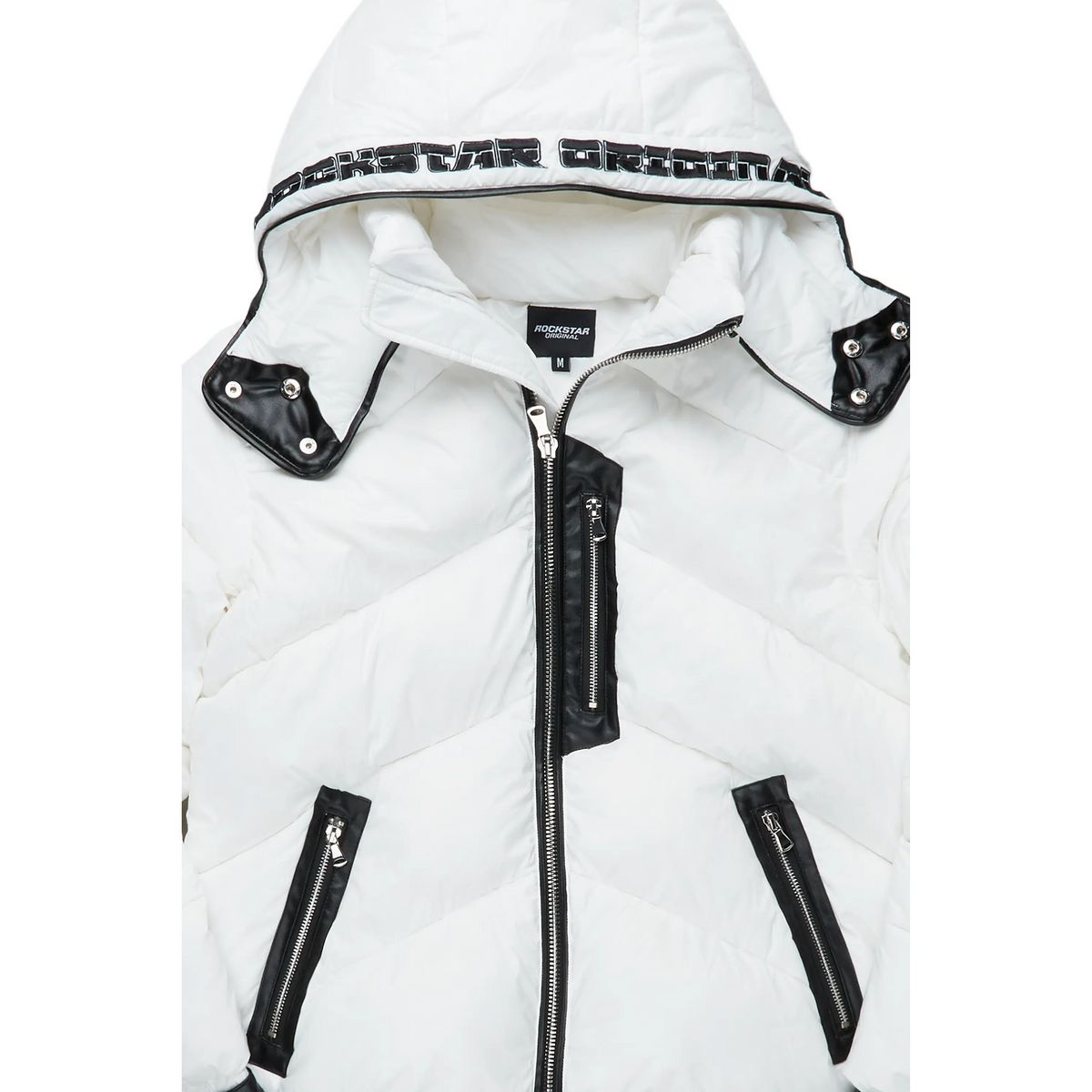 An urban quilted puffer jacket for men in white. Designed with water-resistant fabric for optimal warmth.