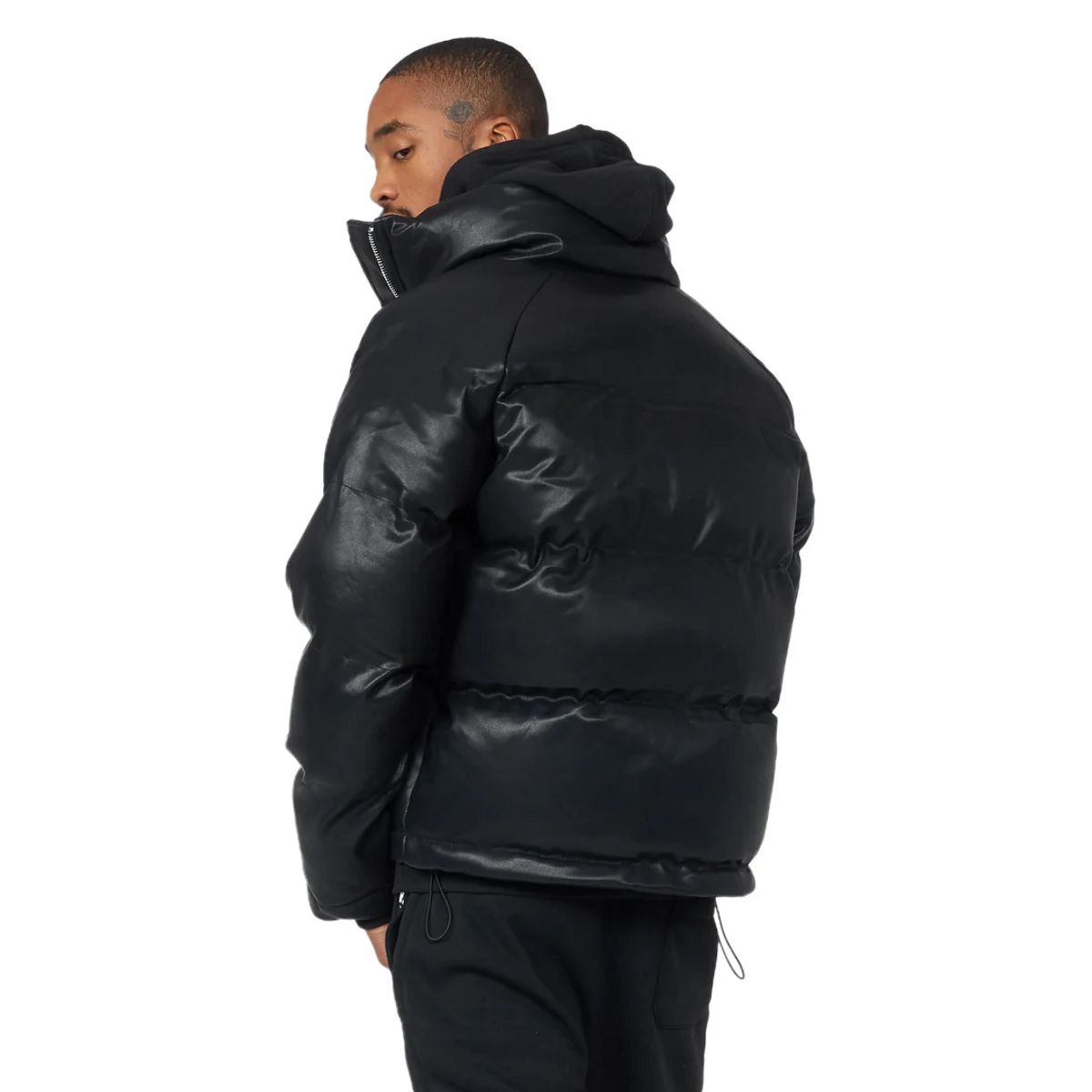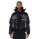 An urban streetwear puffer jacket for men in black. Designed with highest-quality insulated fabric and water and wind-resistant materials for a must-cop outerwear style.