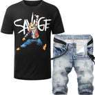 2pc Ripped Denim Shorts+Savage Bear T-shirt ⚡️